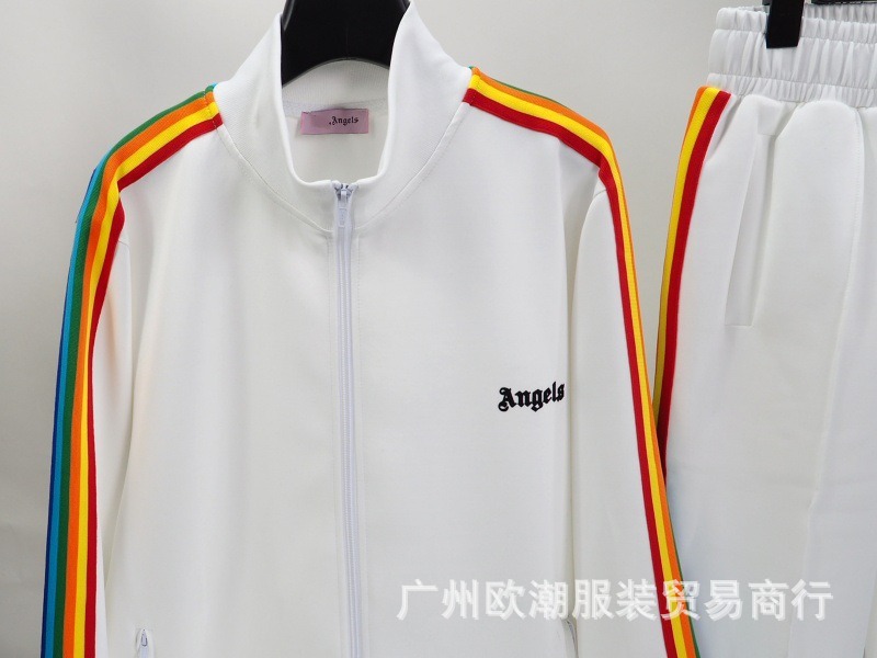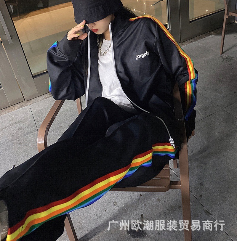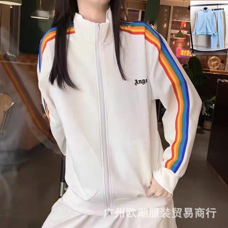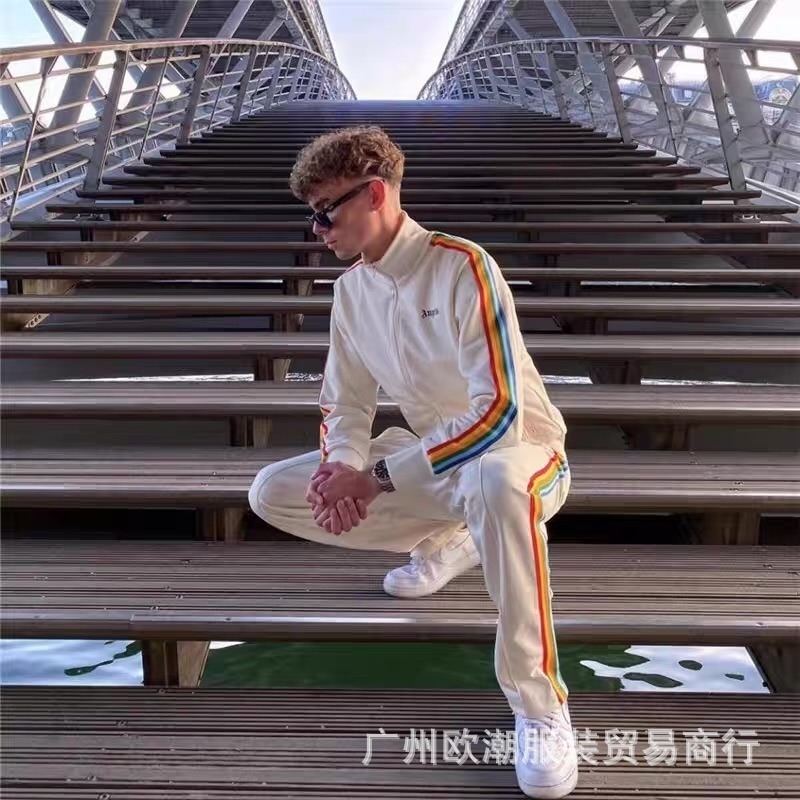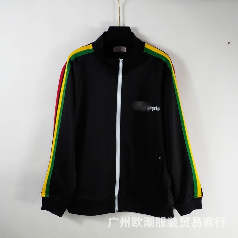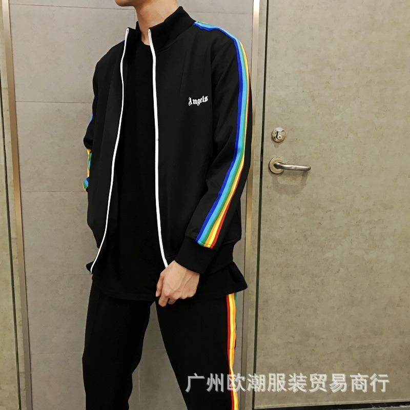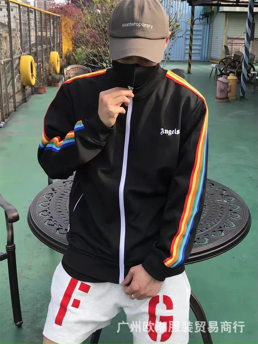 대외 무역 정정 PA 패션 브랜드 레인보우 스트라이프 리본 지퍼 재킷 팜 트리 레트로 스포츠 재킷 남성용 교복스토어 가기
