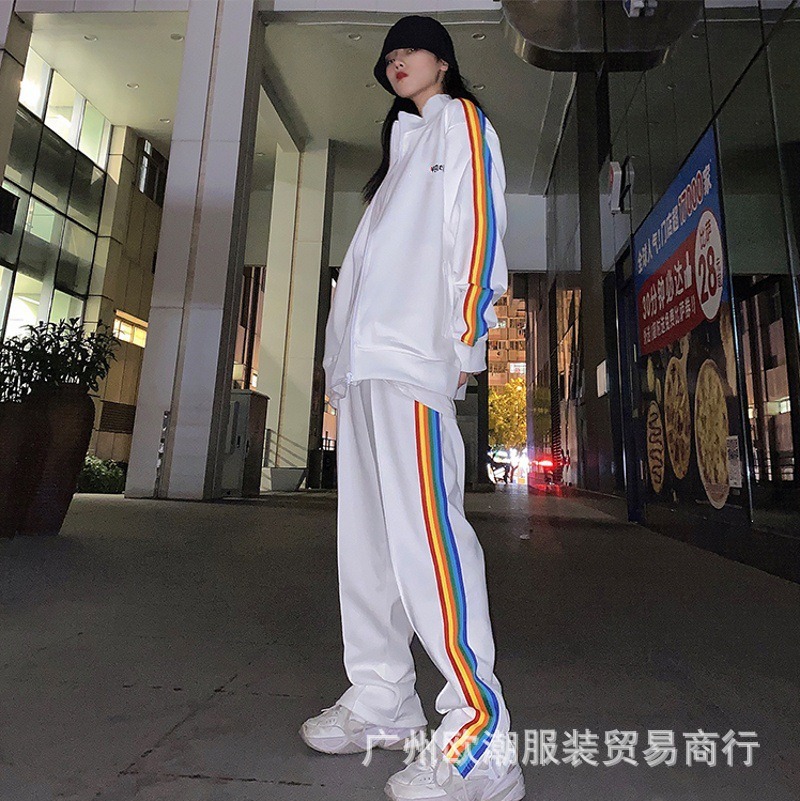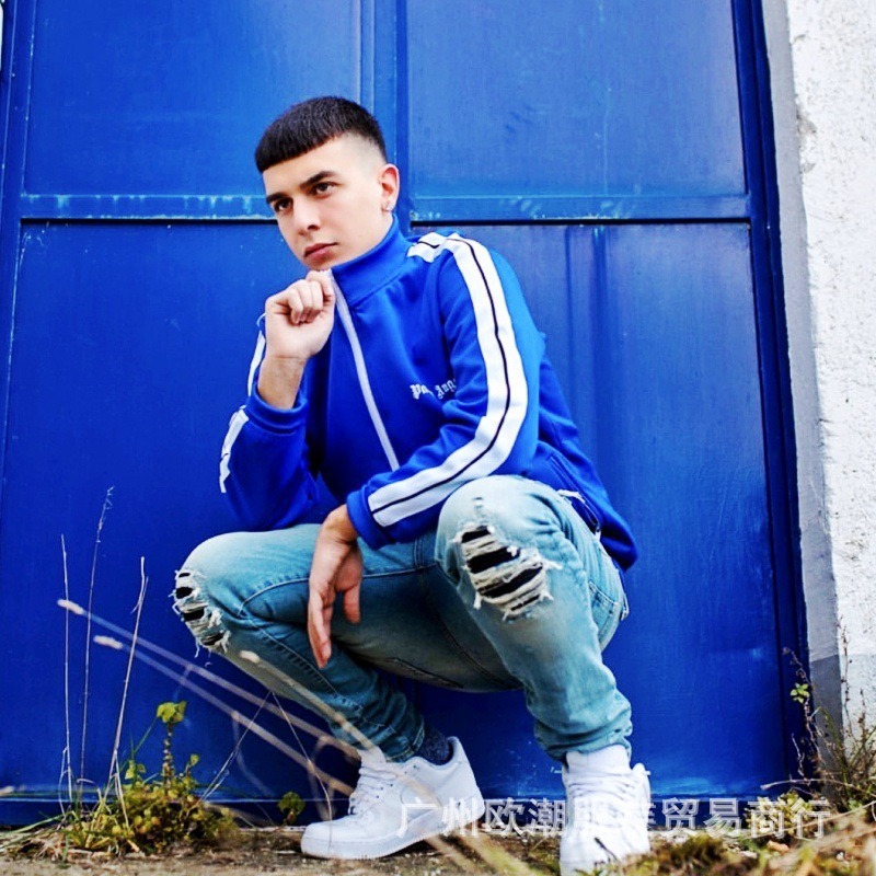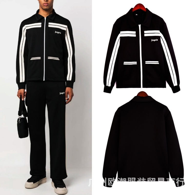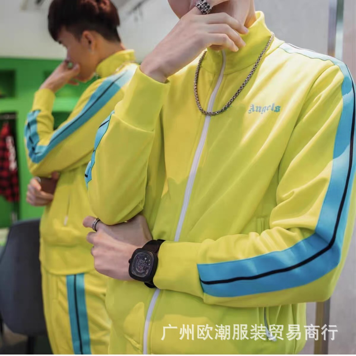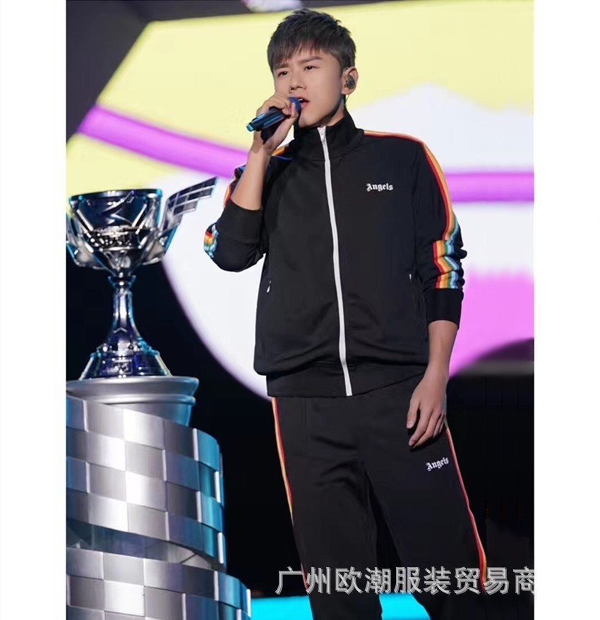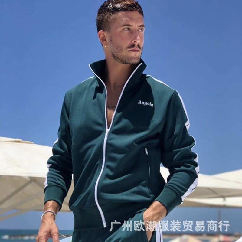 대외 무역 정정 PA 패션 브랜드 레인보우 스트라이프 리본 지퍼 재킷 팜 트리 레트로 스포츠 재킷 남성용 교복스토어 가기