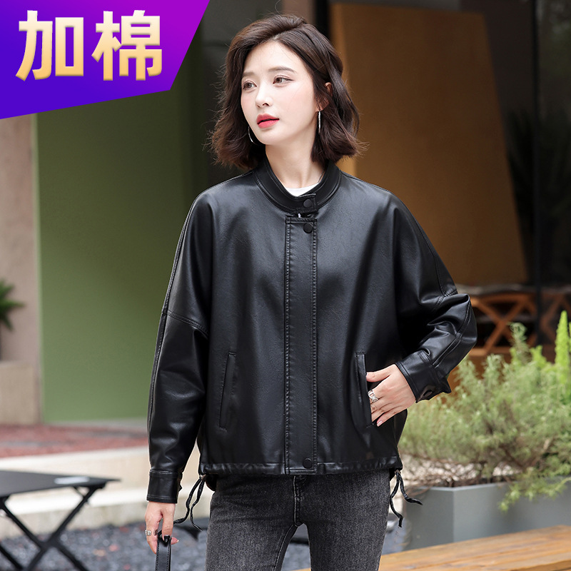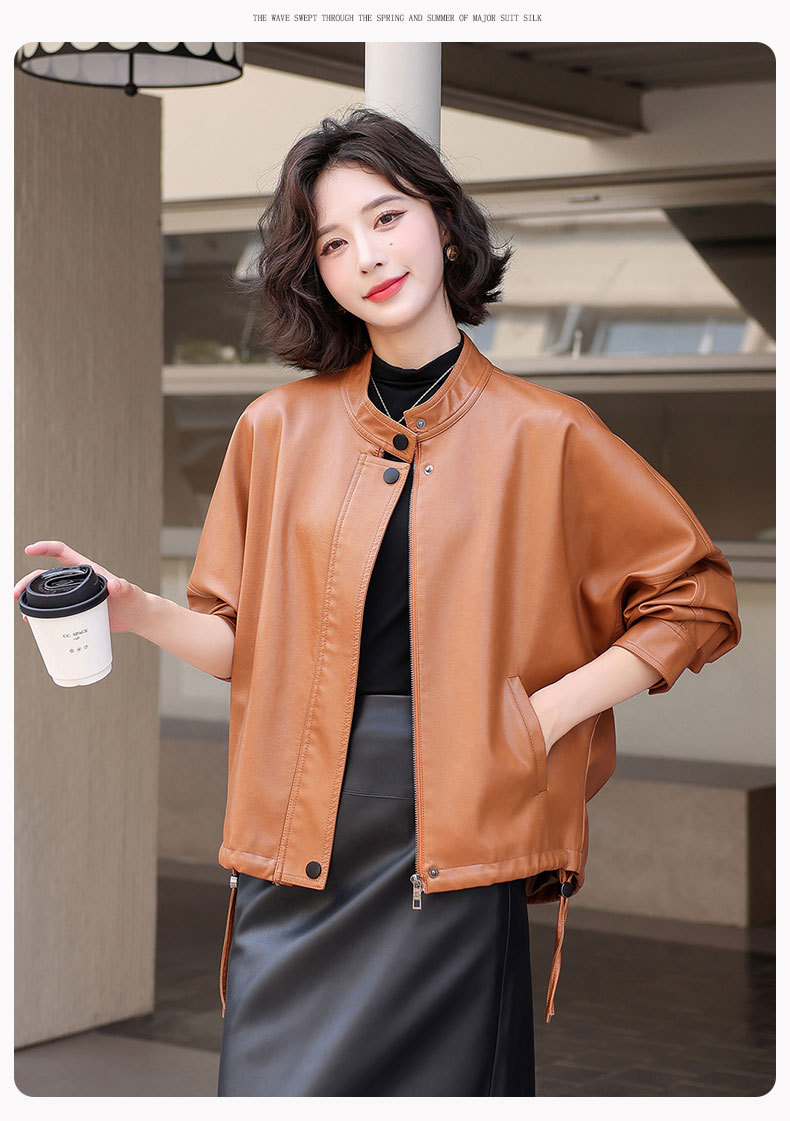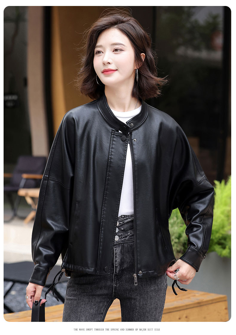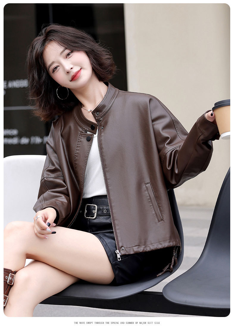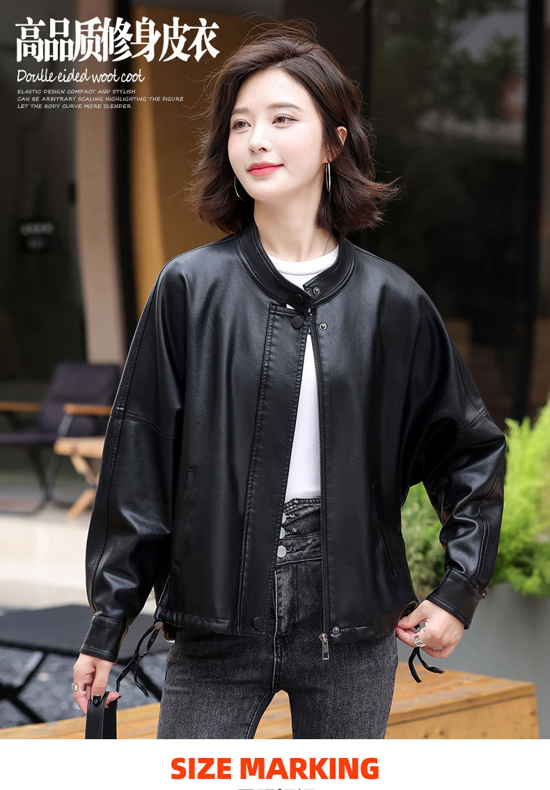 2024 새로운 가을, 겨울 한국 스타일 가죽 자켓 여성 플러스 사이즈 가죽 자켓 PU 가죽 여성 가죽 자켓 와이드 버전 느슨한 오프 숄더 슬리브스토어 가기