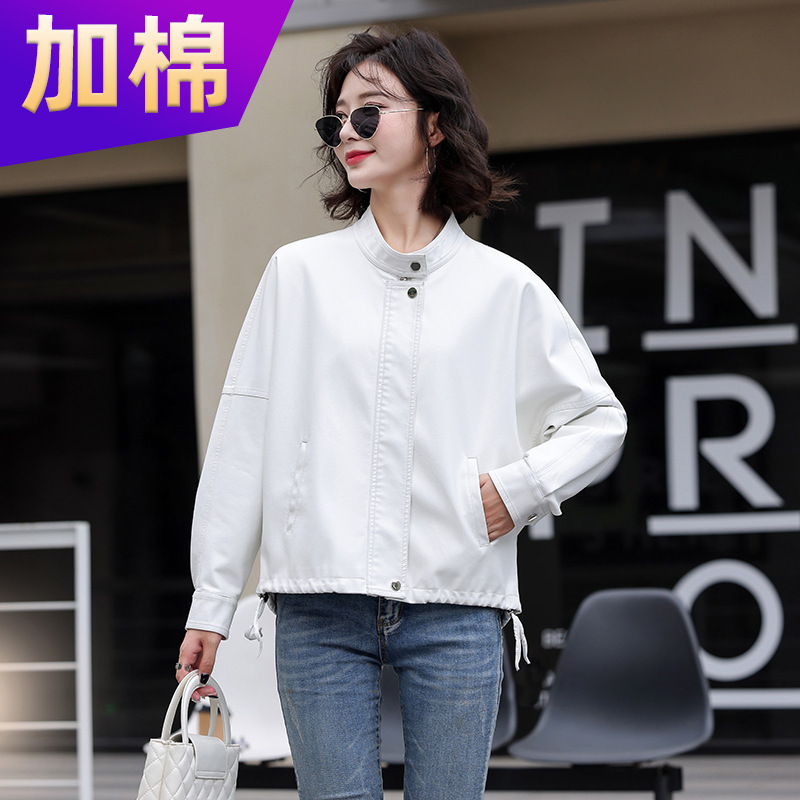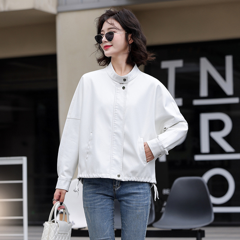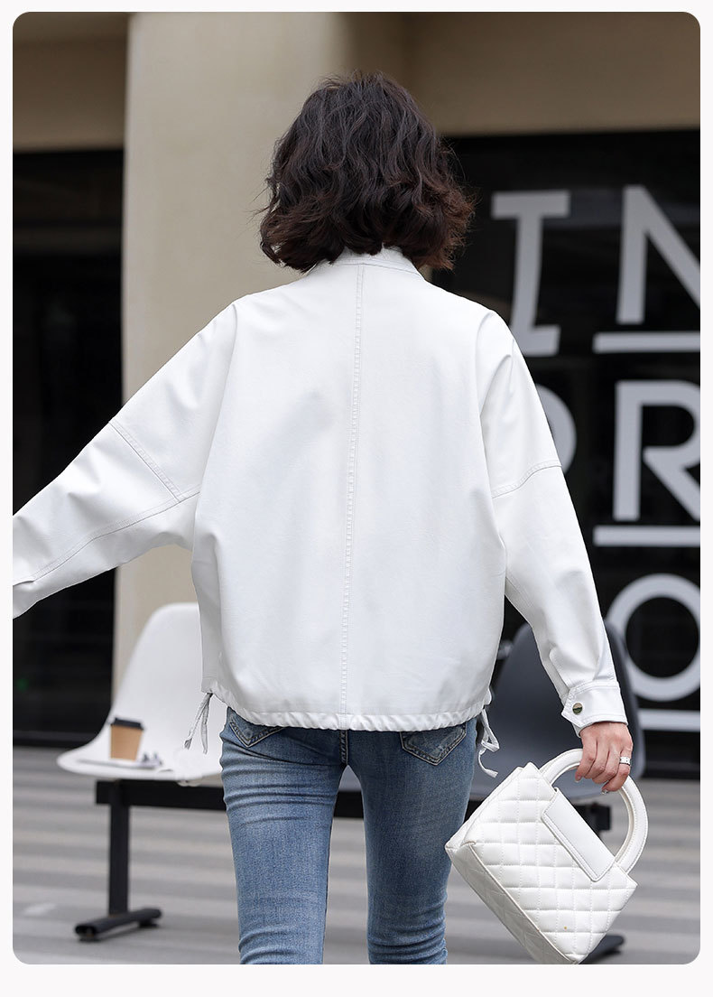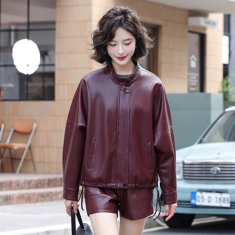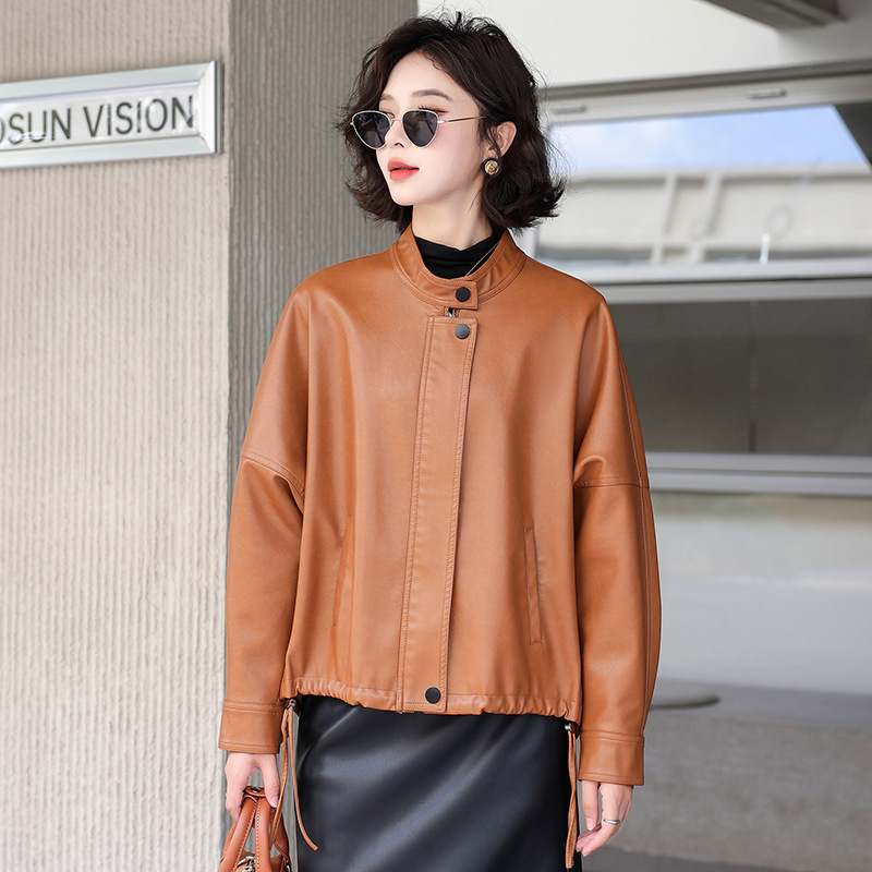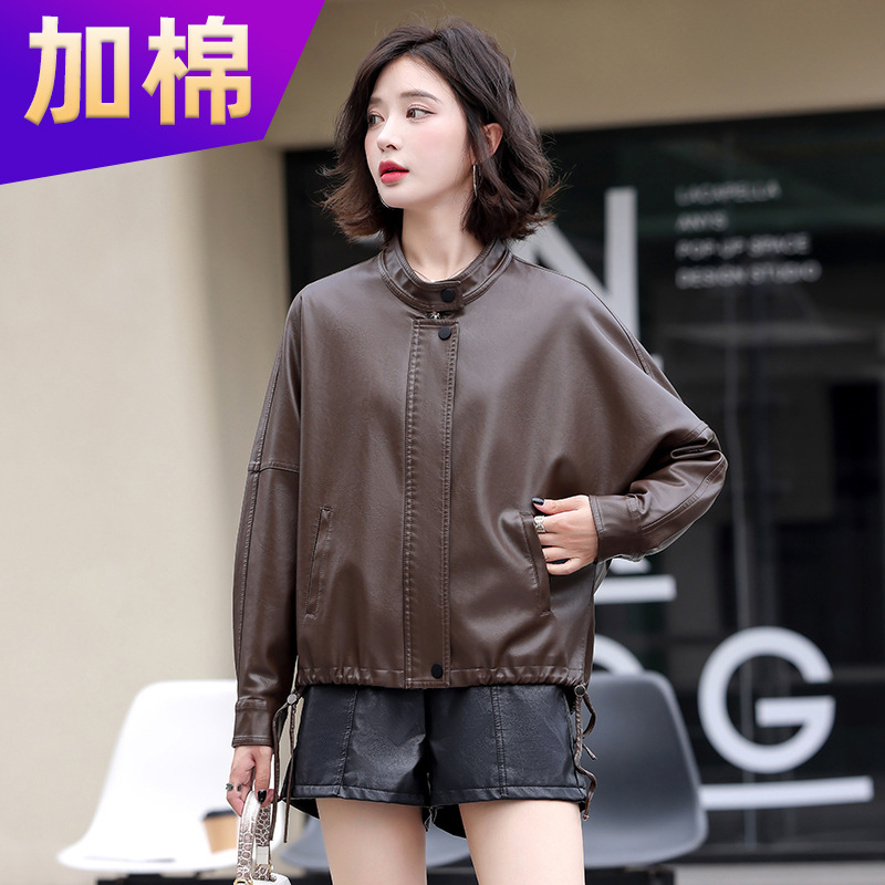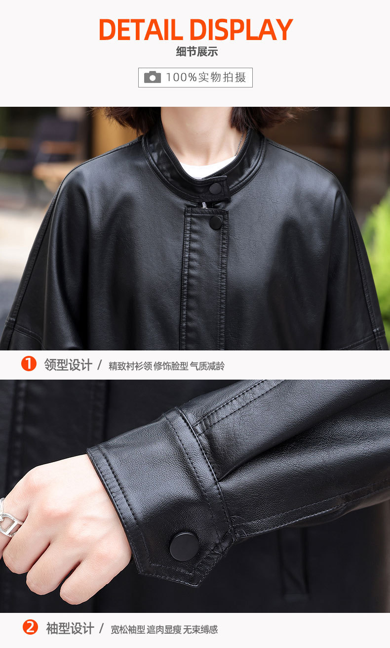 2024 새로운 가을, 겨울 한국 스타일 가죽 자켓 여성 플러스 사이즈 가죽 자켓 PU 가죽 여성 가죽 자켓 와이드 버전 느슨한 오프 숄더 슬리브스토어 가기