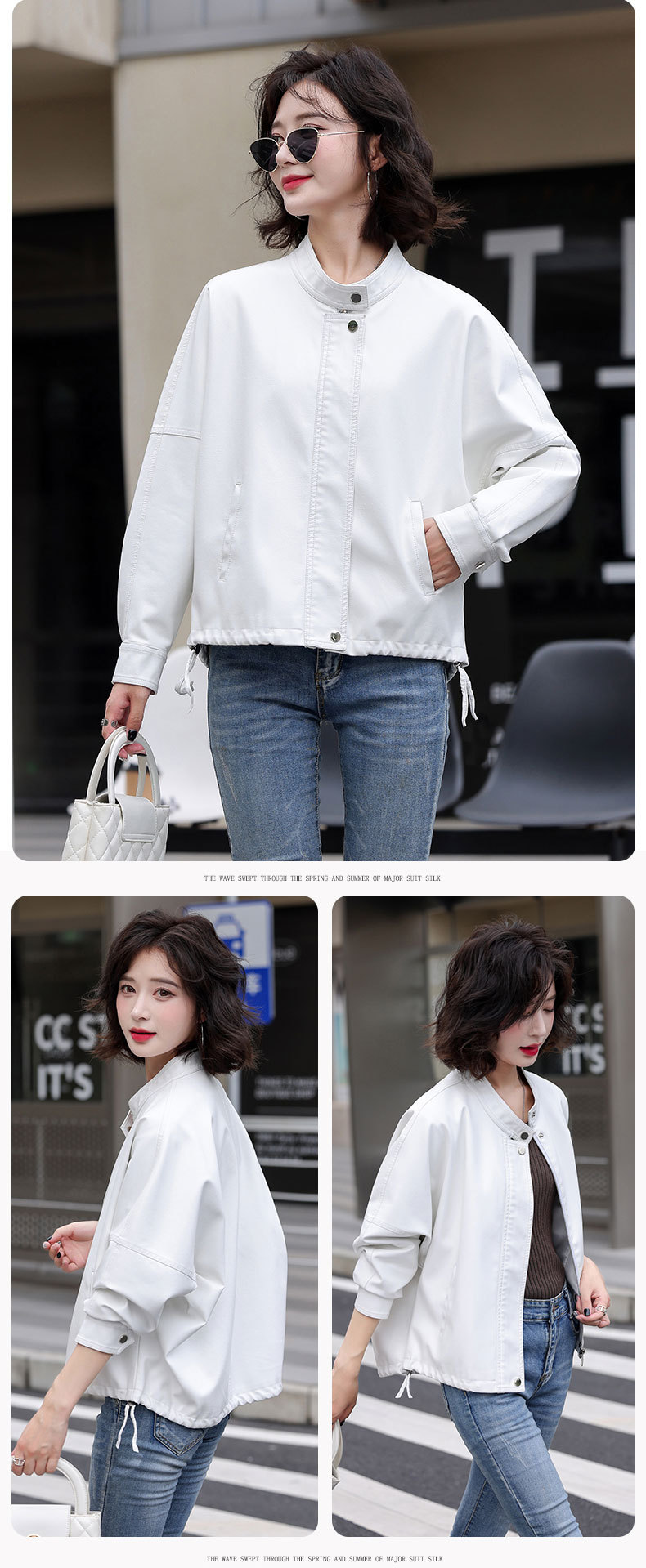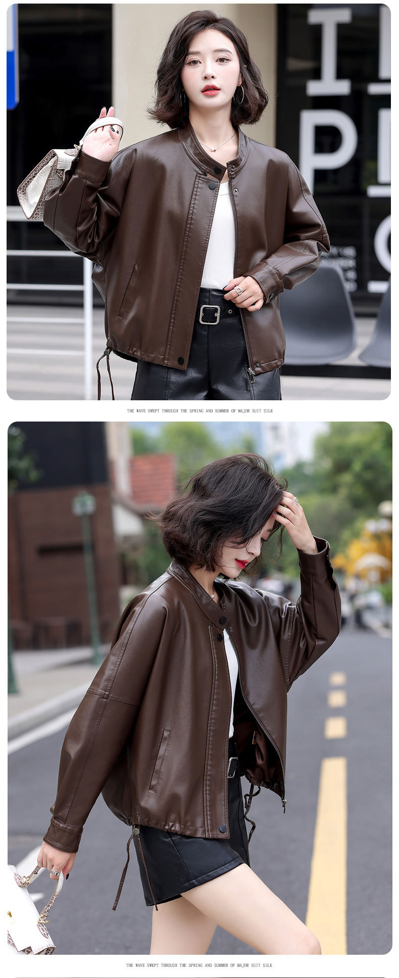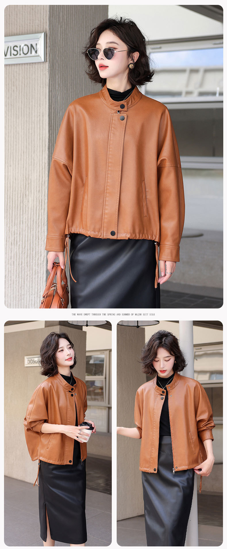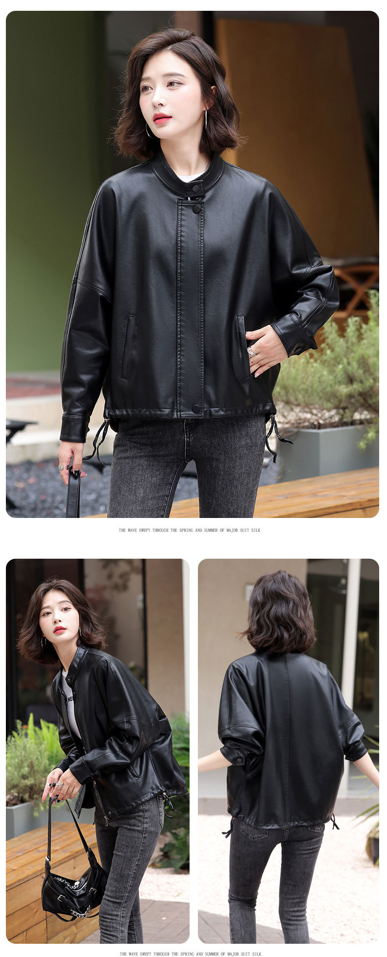 2024 새로운 가을, 겨울 한국 스타일 가죽 자켓 여성 플러스 사이즈 가죽 자켓 PU 가죽 여성 가죽 자켓 와이드 버전 느슨한 오프 숄더 슬리브스토어 가기