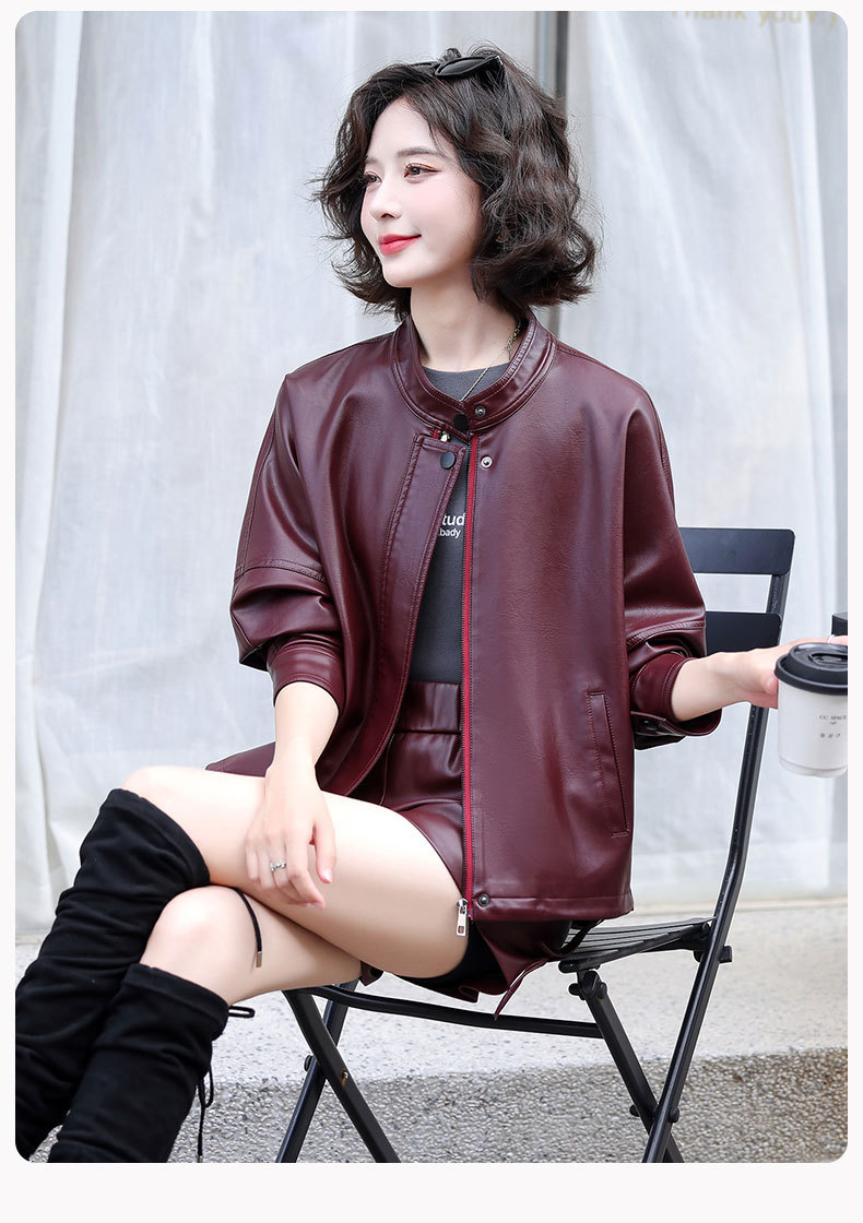 2024 새로운 가을, 겨울 한국 스타일 가죽 자켓 여성 플러스 사이즈 가죽 자켓 PU 가죽 여성 가죽 자켓 와이드 버전 느슨한 오프 숄더 슬리브