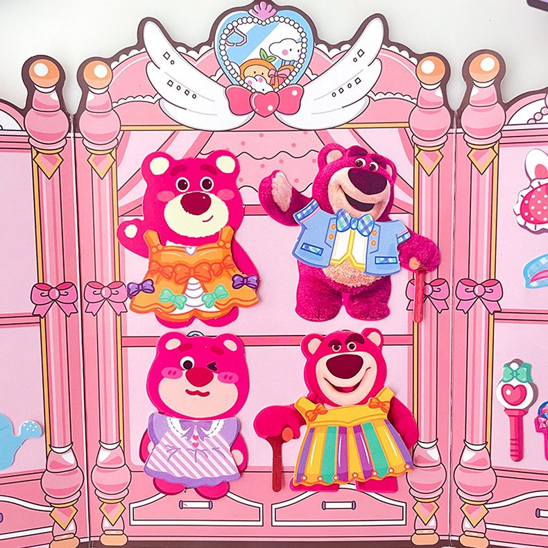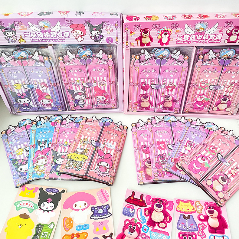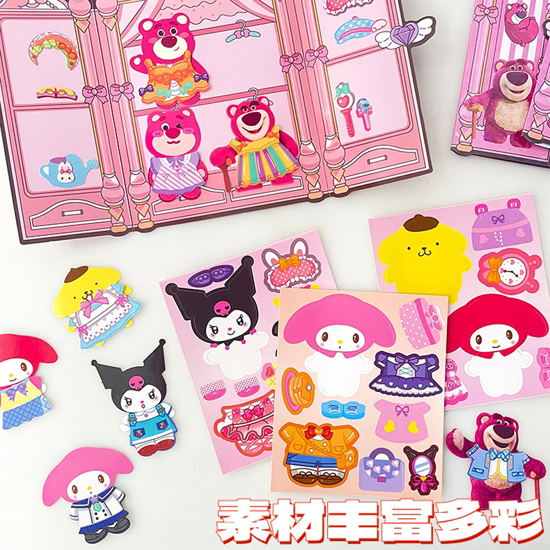 원피스 업 옷장 쇼 산리오 딸기 곰 새로운 소녀 DIY 장면 어린이 수제 퍼즐 조용한 책 스티커스토어 가기
