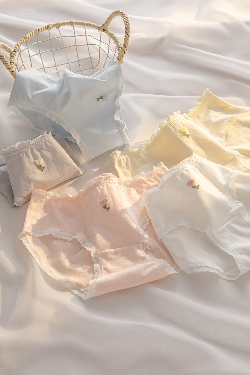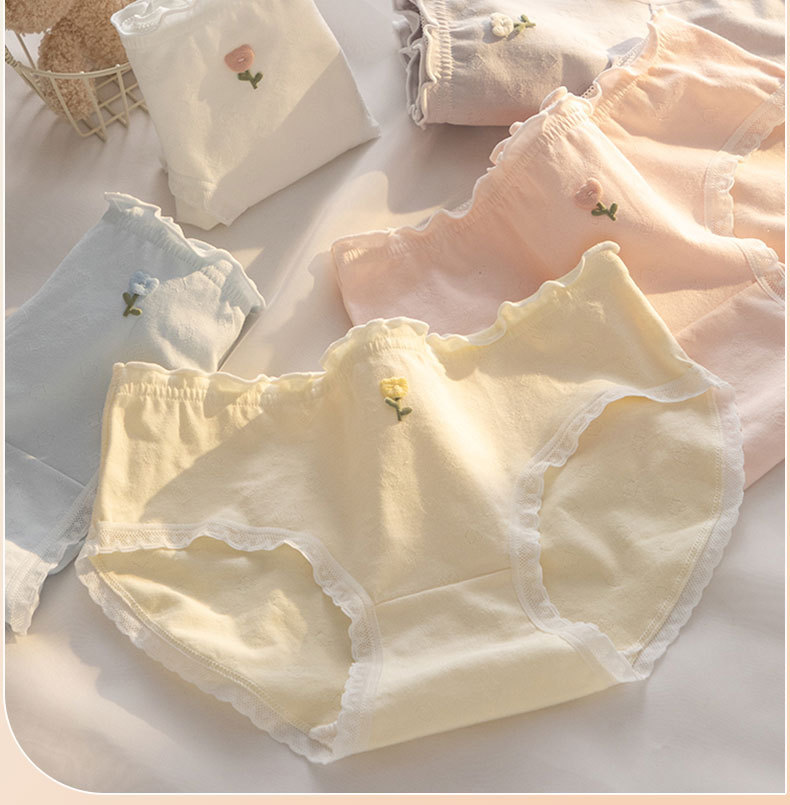 7A 항균 가랑이 여성 속옷 통기성 클래스 아기면 튤립 자카드 허리 엉덩이 학생 브리프스토어 가기