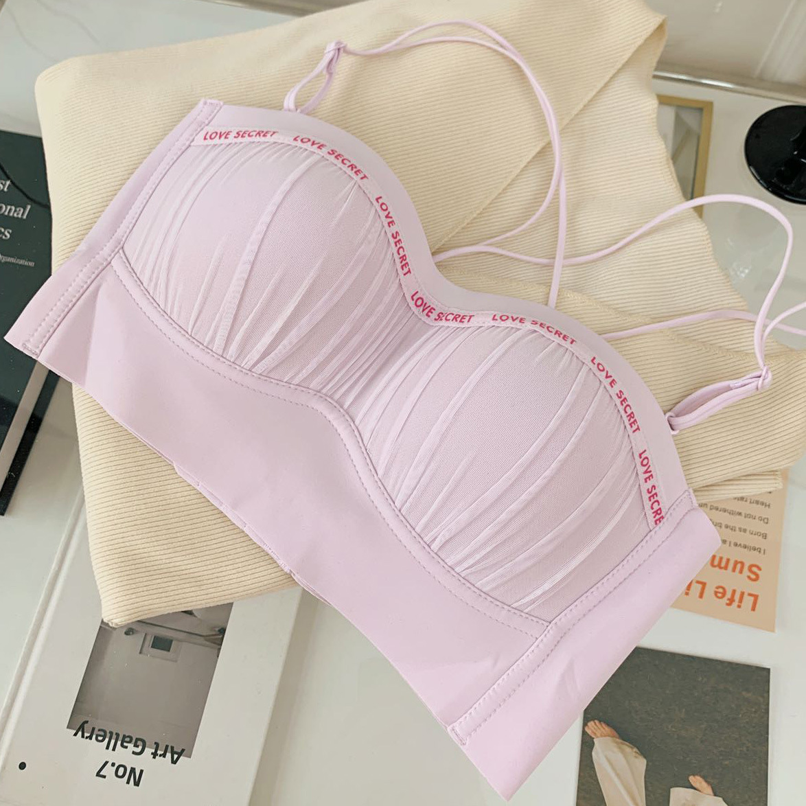 8021 스트랩리스 슬링 아름다운 뒤로 큰 등이없는 속옷 여성의 작은 가슴 모여 가을 얇은 어깨 스트랩 편안한 브래지어