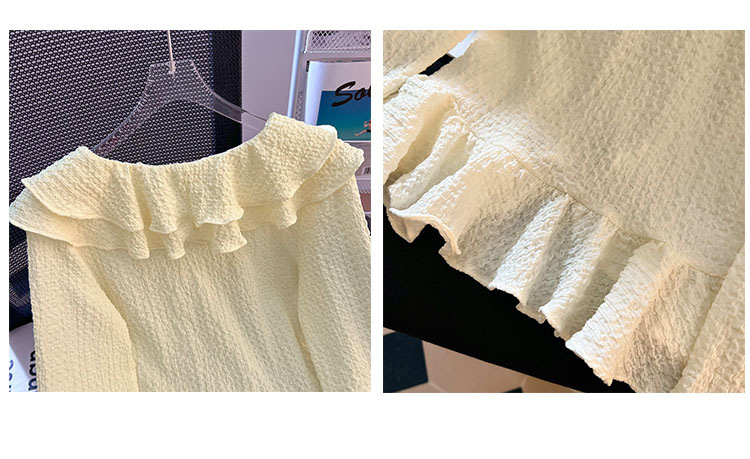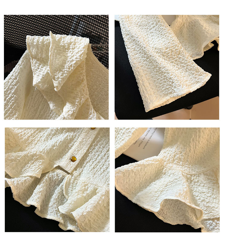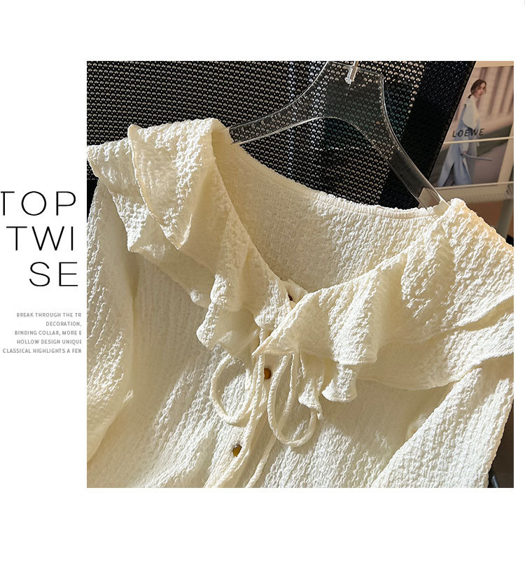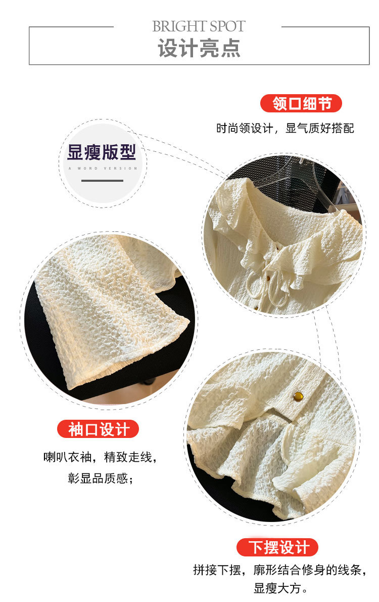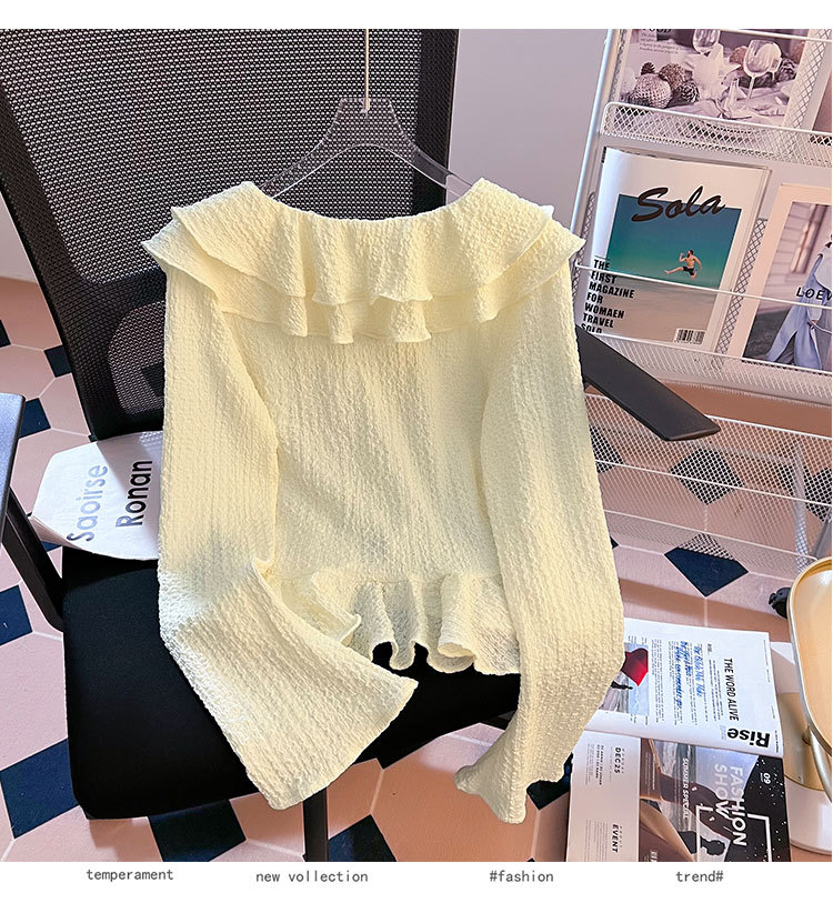 단색 뿔 소매 긴 소매 카디건 가을 새로운 프랑스 부드러운 진주 버클 주름 기질 탑 도매