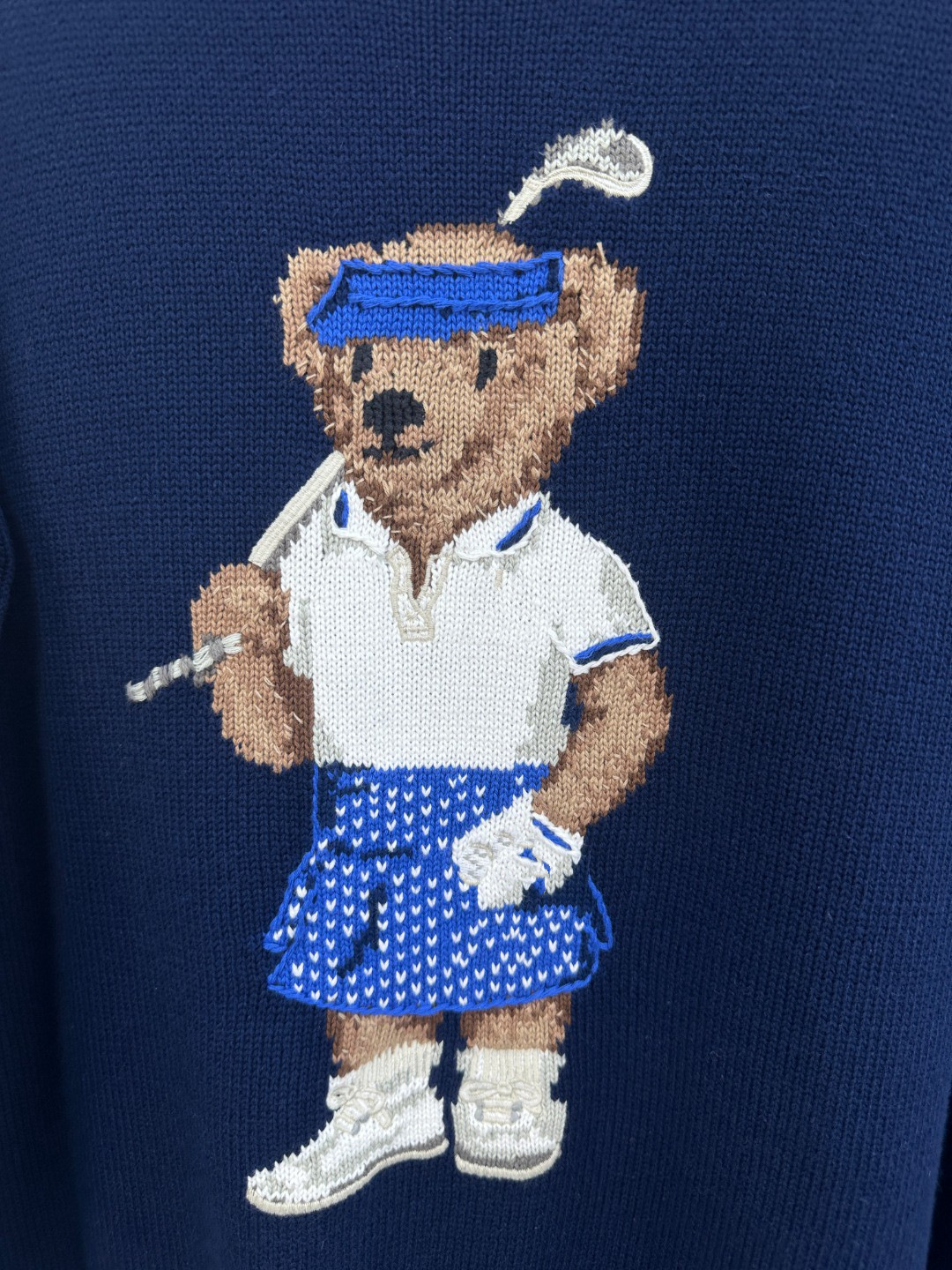 가을과 겨울 2024 새로운 면 중공업 만화 곰 크루 넥 대학 나이 감소 조커 스웨터 남성과 여성