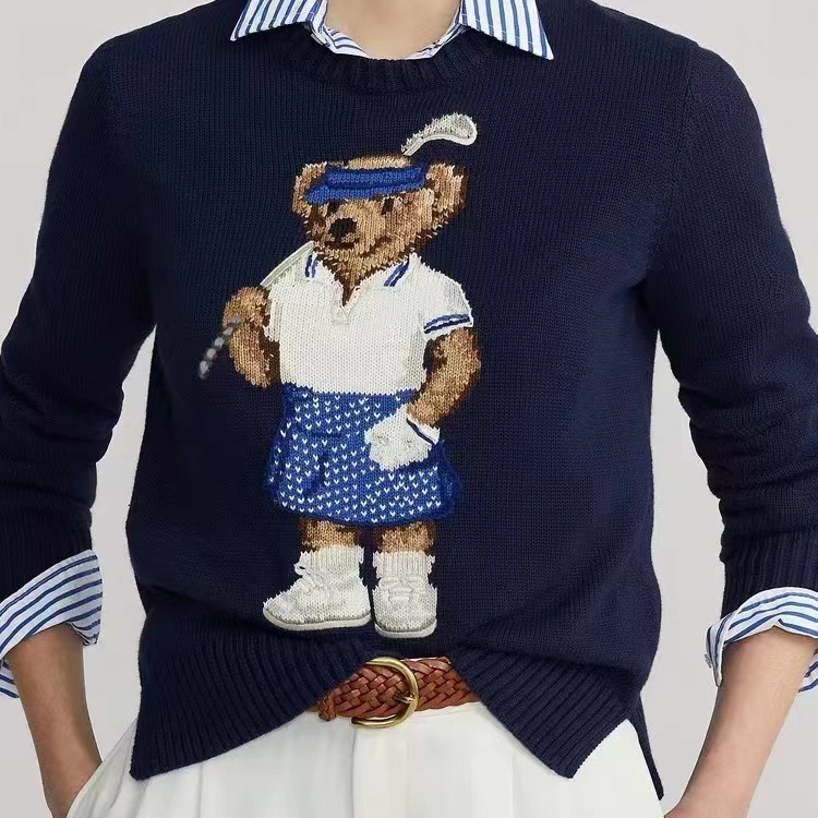 가을과 겨울 2024 새로운 면 중공업 만화 곰 크루 넥 대학 나이 감소 조커 스웨터 남성과 여성스토어 가기