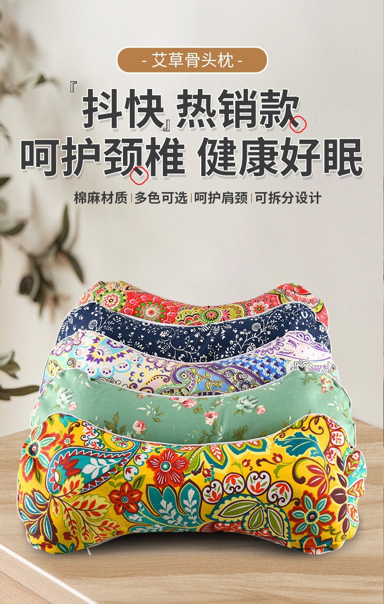 쑥 온열 베개 경추 베개 뼈 모양 경추 보호 건강 베개 뜸 다기능 수면 가정용 쑥 베개스토어 가기