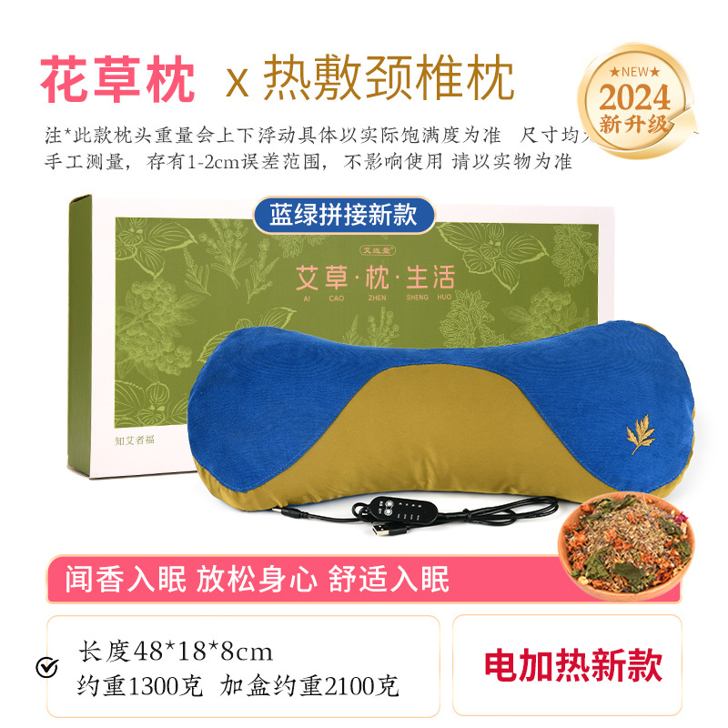 • 고급 2색 접합 파란색과 녹색 - 허브 온찜질 쑥 베개 [선물 상자 포함]