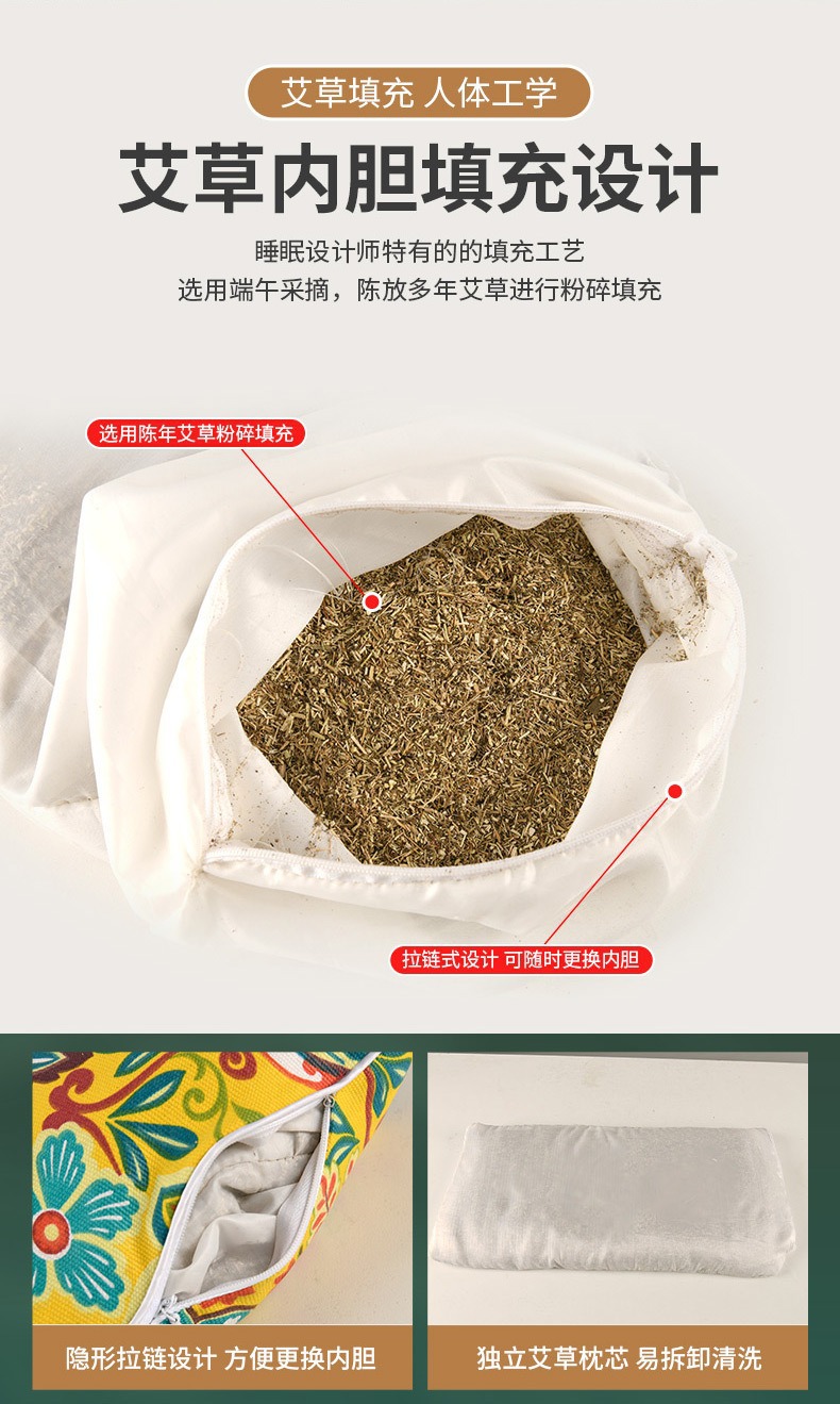 쑥 온열 베개 경추 베개 뼈 모양 경추 보호 건강 베개 뜸 다기능 수면 가정용 쑥 베개