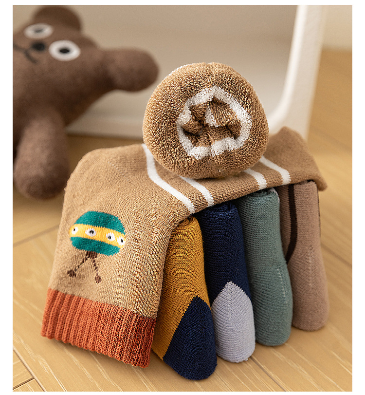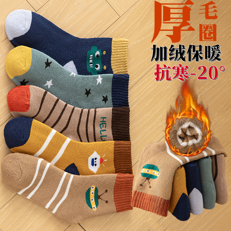 가을과 겨울 기모 따뜻한 국경 테리 양말 어린이 양말은 스타킹 소년 아기 양말 아기 바닥 양말