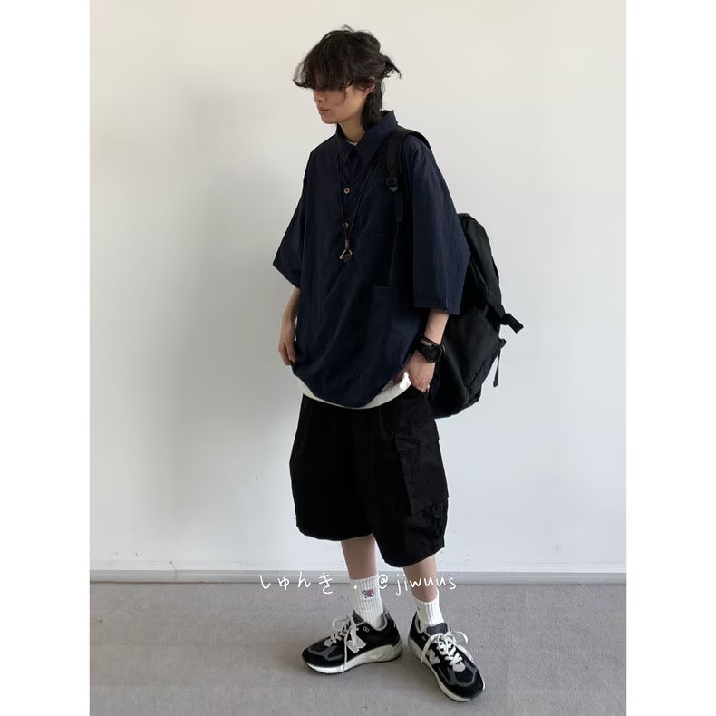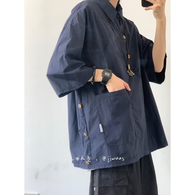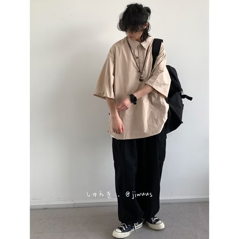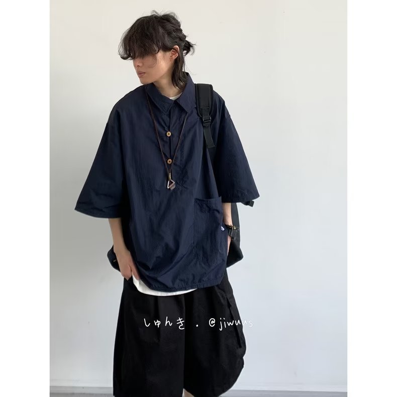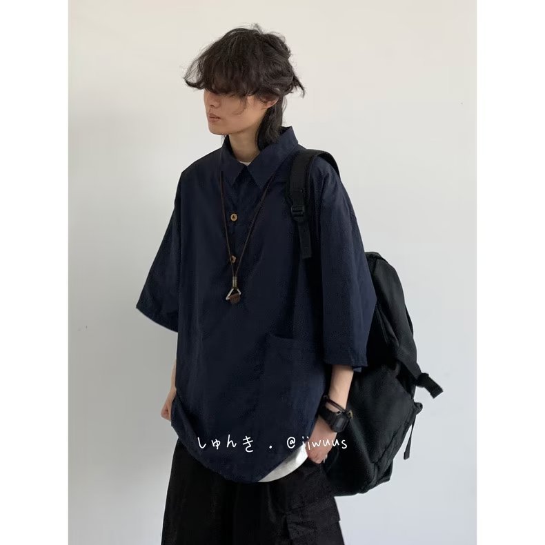 일본식 레트로 시티 보이 폴로 셔츠 남자 여름 홍콩 스타일 Ins 느슨한 캐주얼 올 매치 옷깃 반팔 셔츠스토어 가기