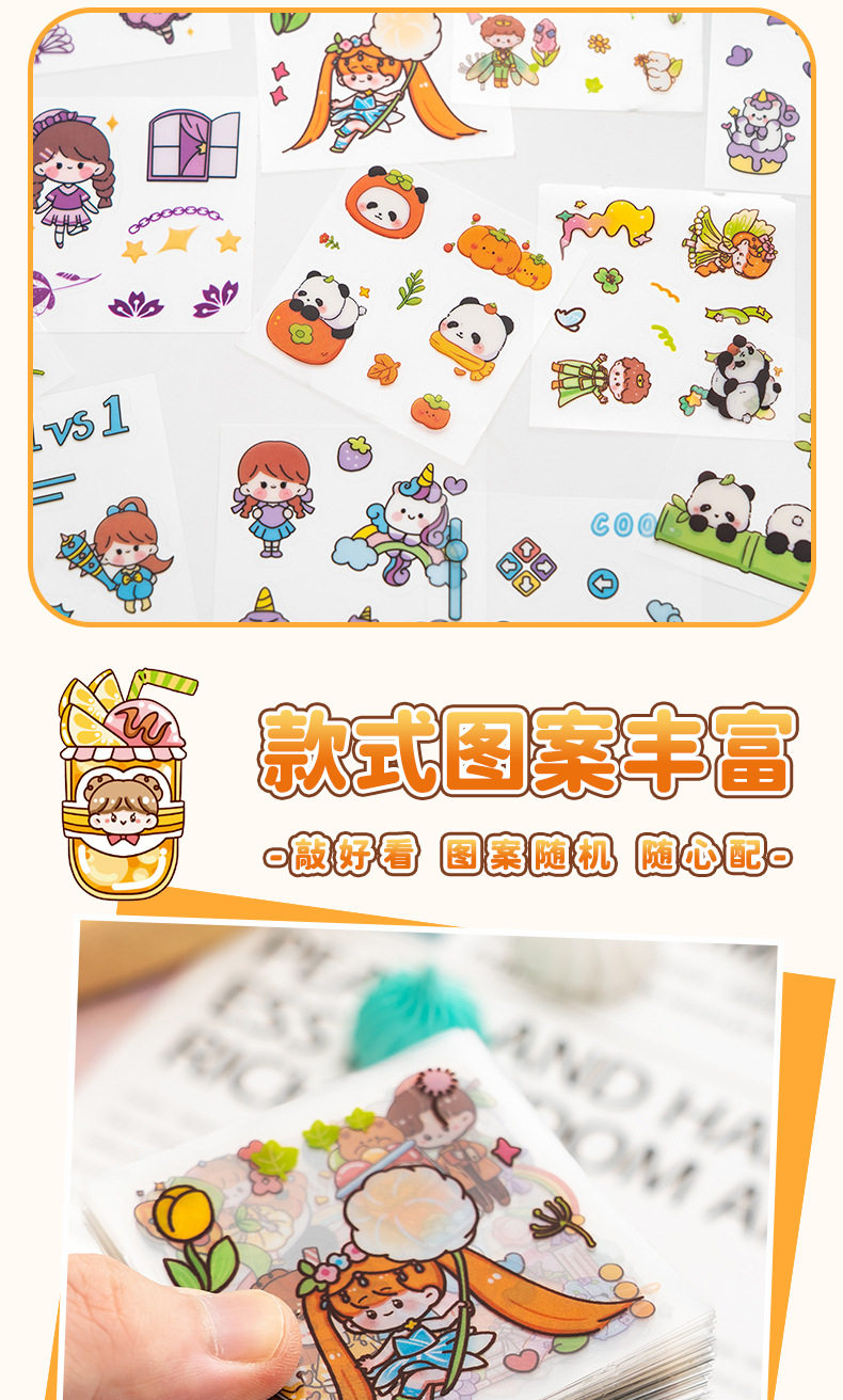 애완 동물 스티커 어린이 소녀 만화 미니 손 계정 장식 diy 귀여운 작은 패턴 손 계정 소재 캐릭터 스티커