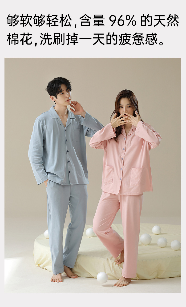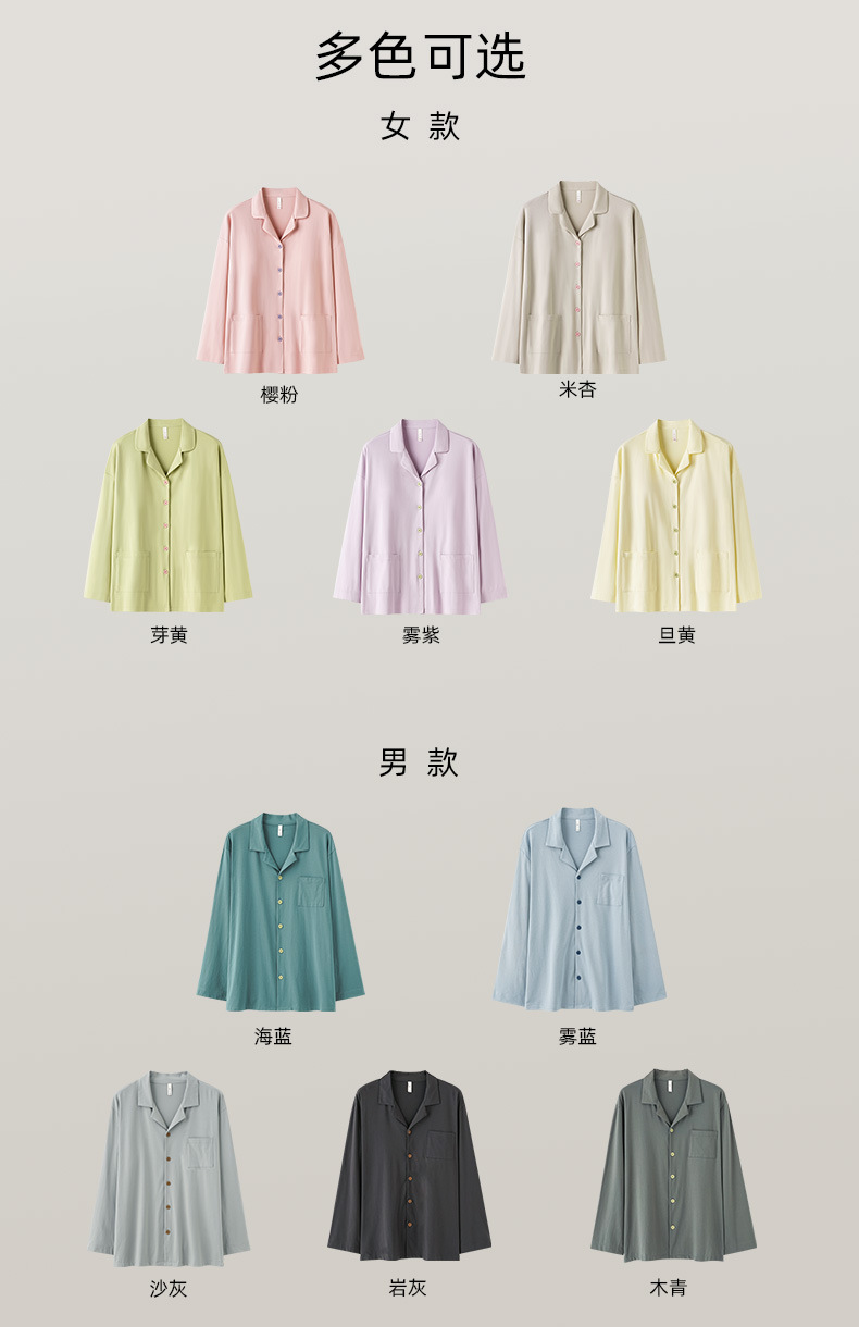 【婴儿棉】双层纱春秋季情侣睡衣女纯棉长袖100%棉男女士家居服套