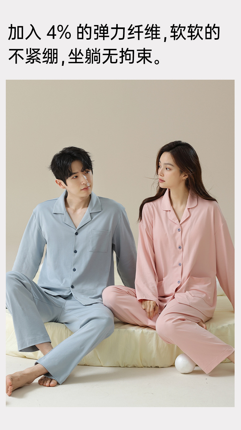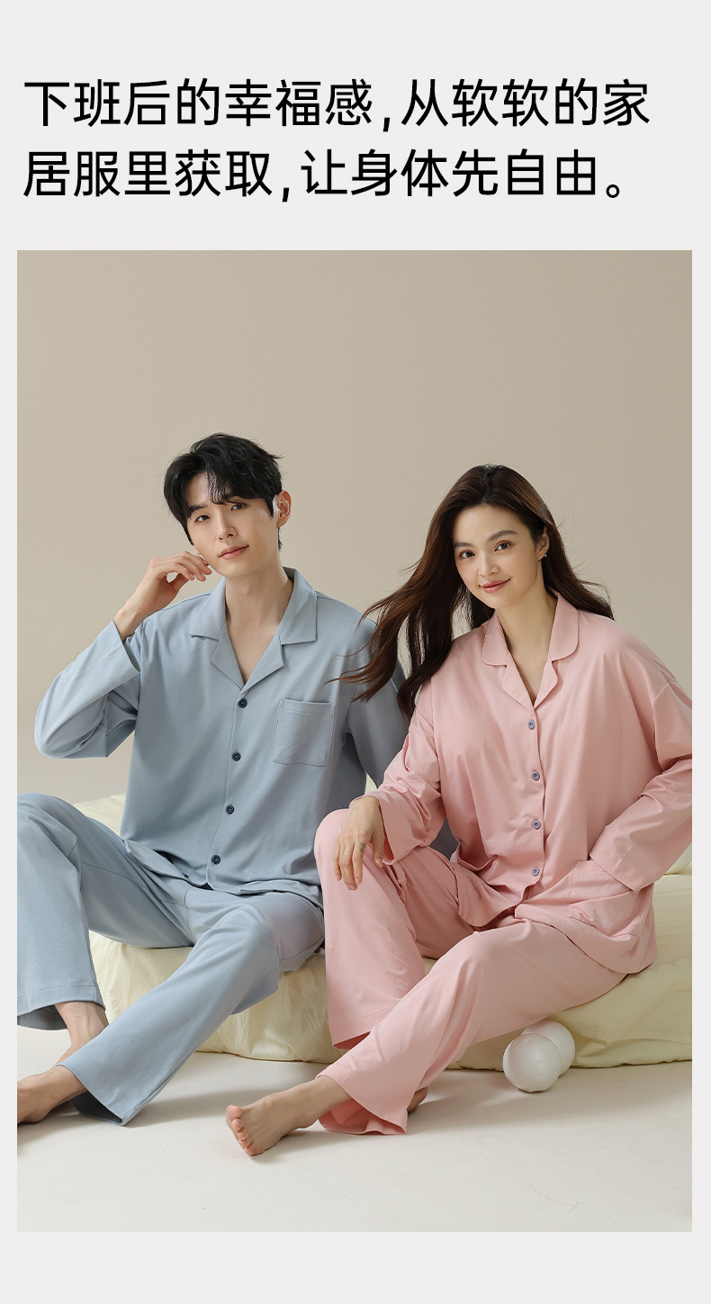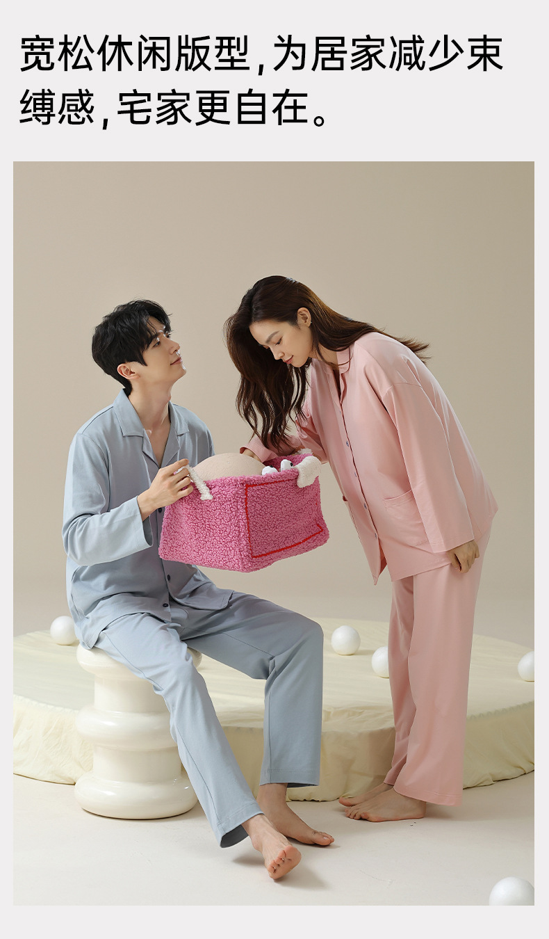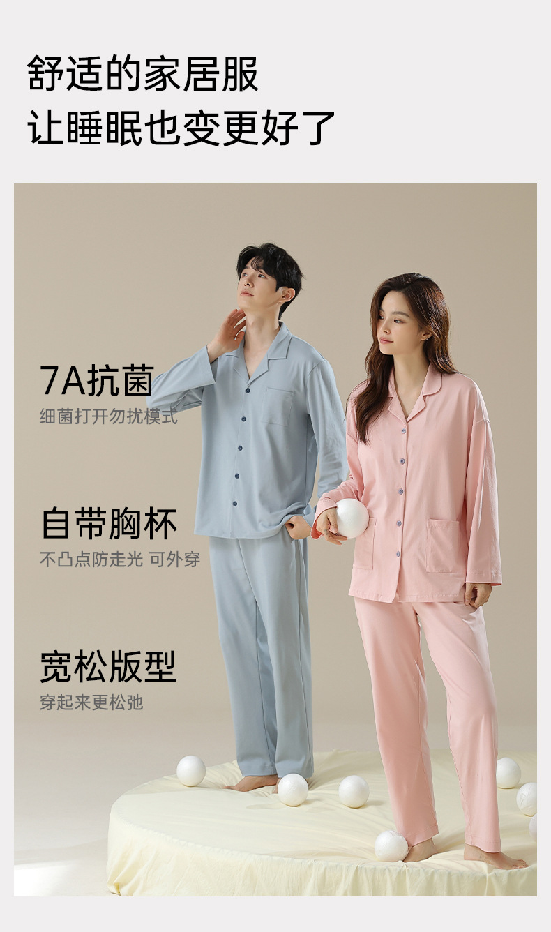 带胸垫秋季情侣睡衣纯棉长袖春季女式家居服男士套装纯欲风高级感