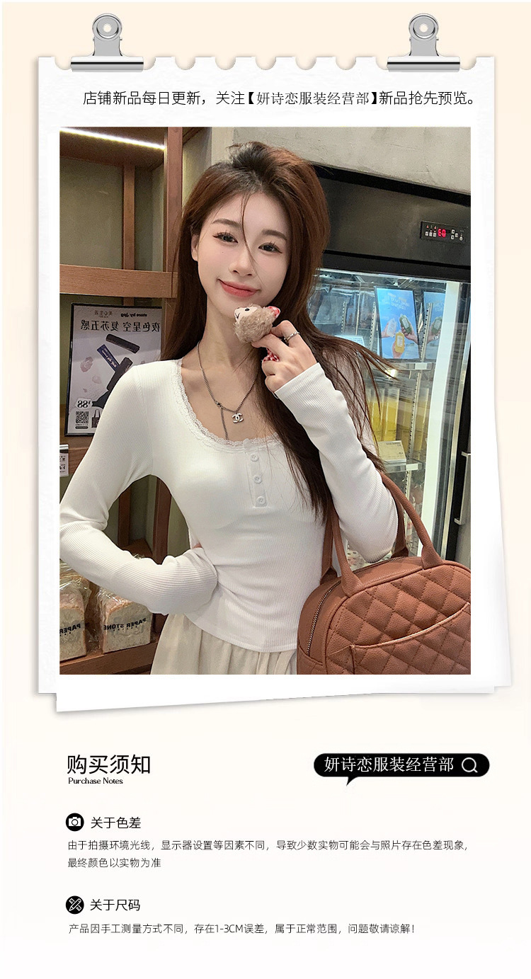 가을 아름다운 순수한 욕망 레이스 슬리밍 양털베이스 셔츠 여성의 내부 긴 소매 티셔츠 프론트 숄더 스퀘어 칼라 탑스토어 가기