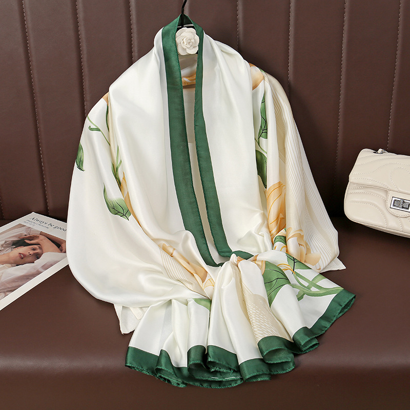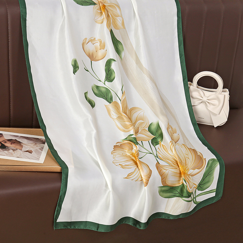 봄, 여름, 가을 패션 외국 스타일 하이 엔드 올 매치 리 브로케이드 새틴 식물 꽃 스카프 일반 우아한 문학 스타일 소녀의 목도리