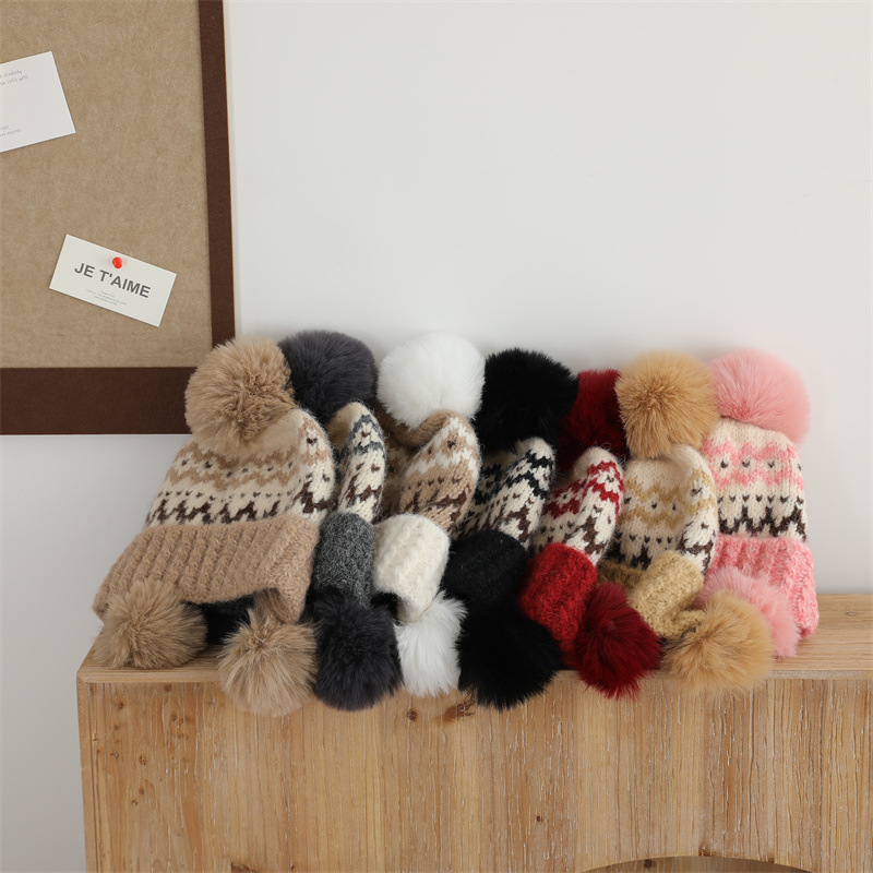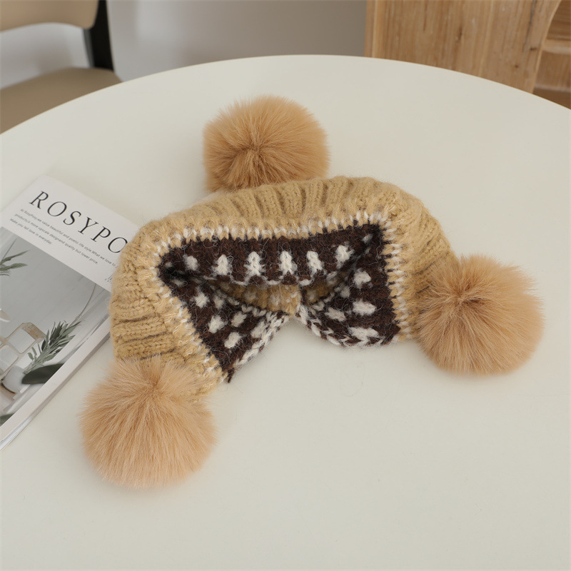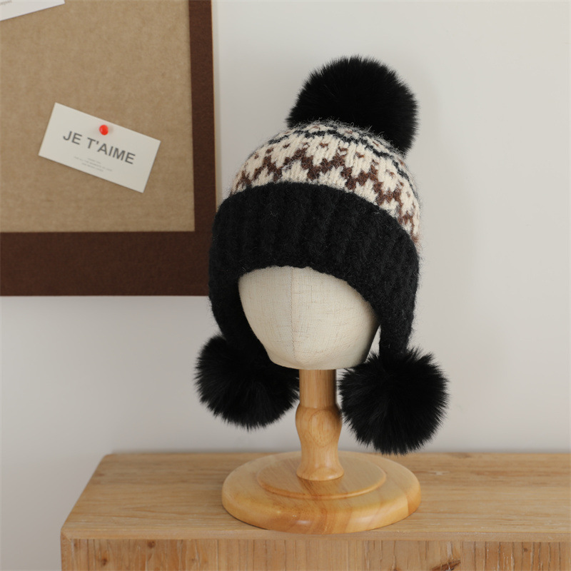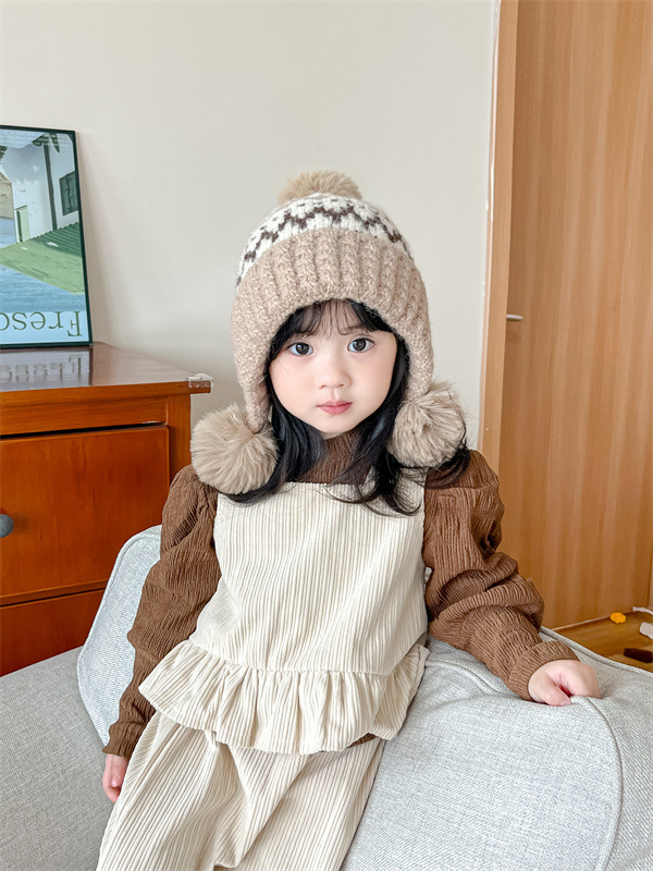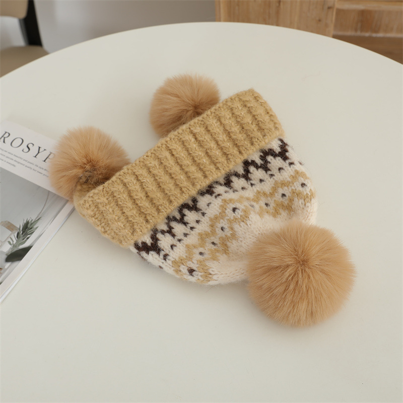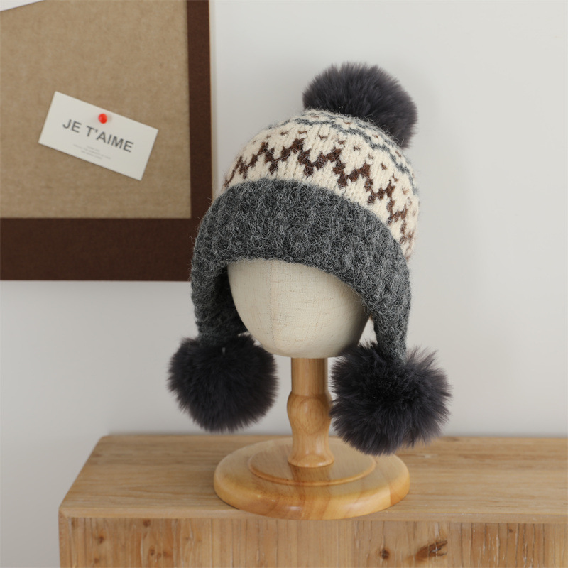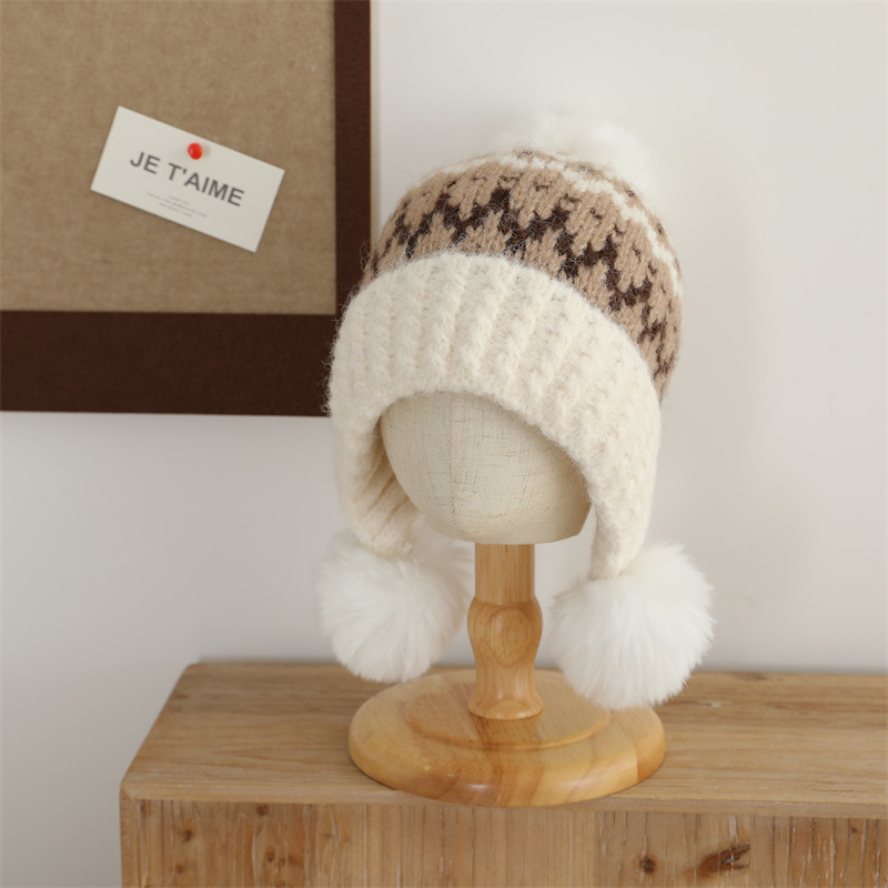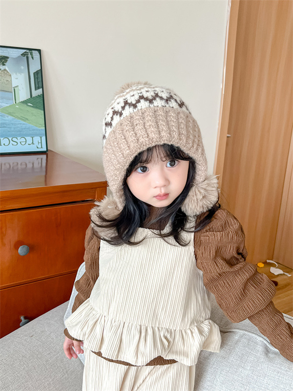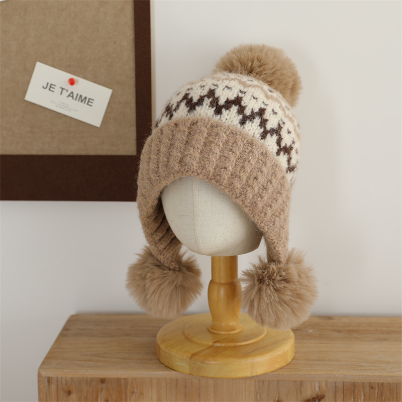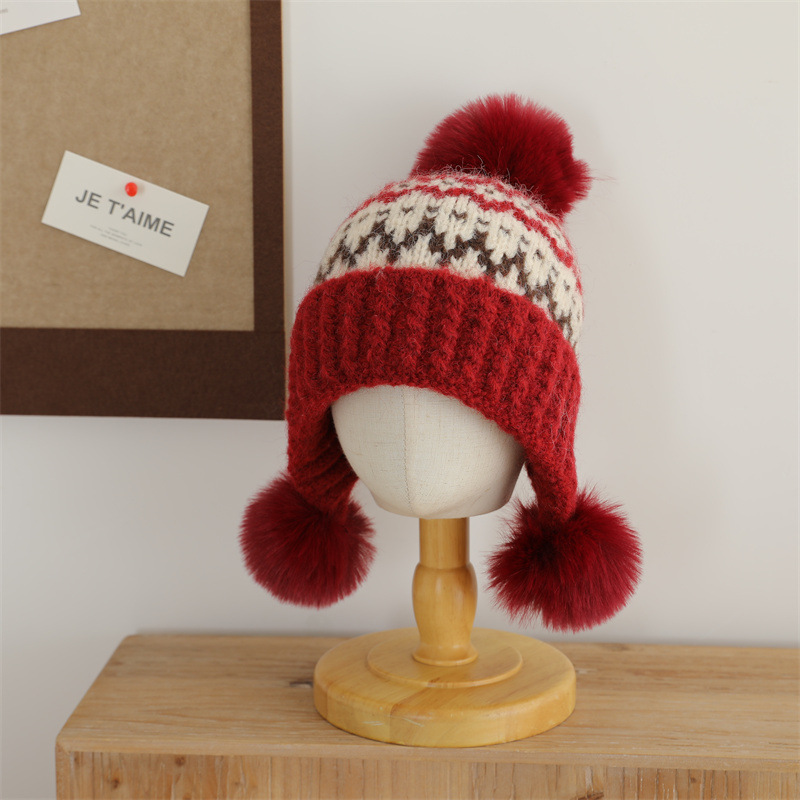 빈티지 마일 라드 어린이 울 모자 여성의 가을과 겨울 따뜻한 귀 보호 캐주얼 콜드 모자 모피 볼 두꺼운 라인 아기 니트 모자