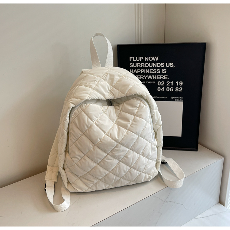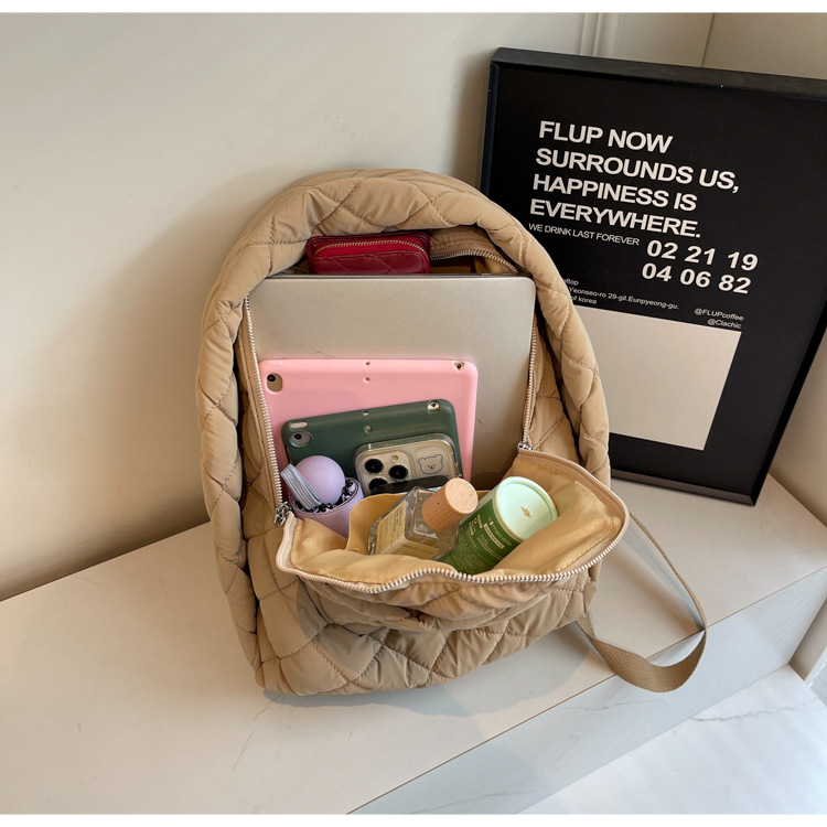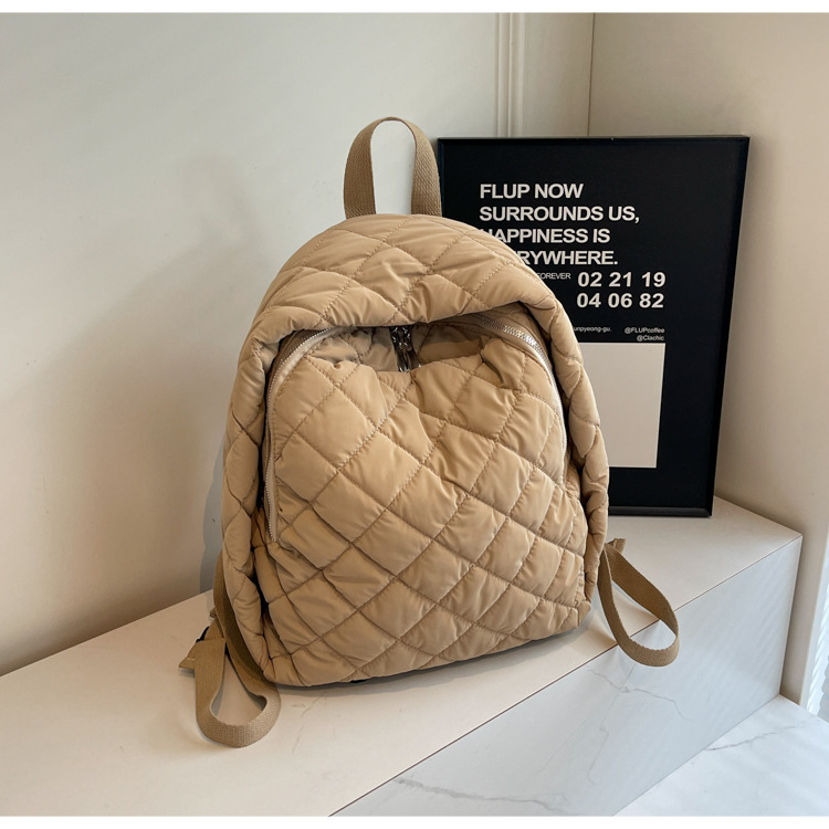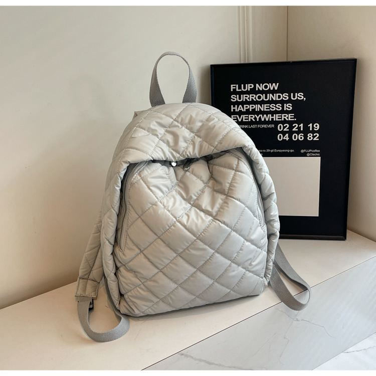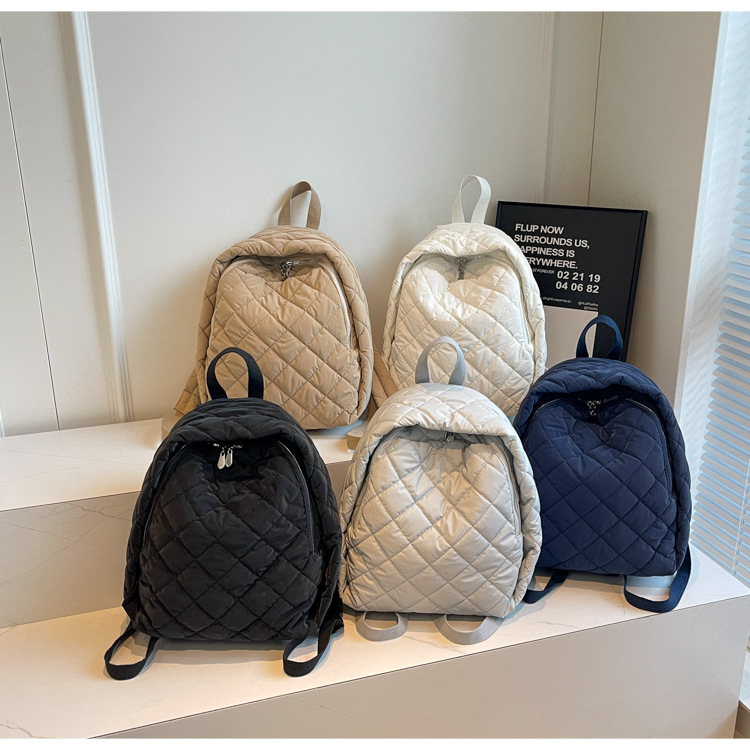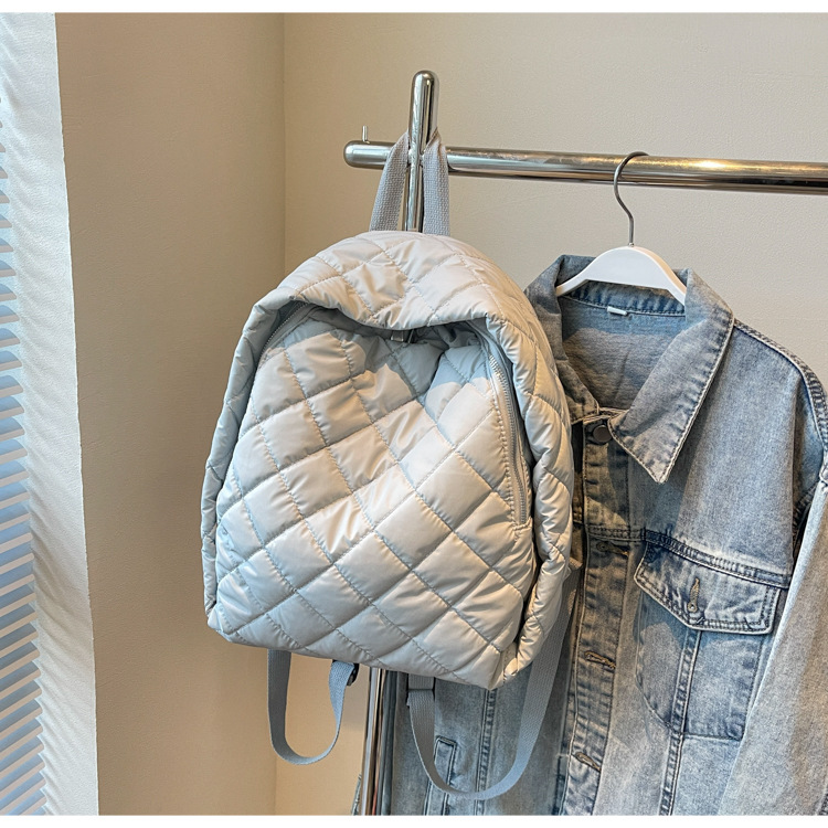 도매 2024 새로운 다이아몬드 격자 자수면 패딩 재킷 배낭 여성 공간면 대용량 학생 여행 레저 배낭