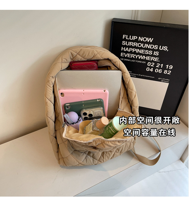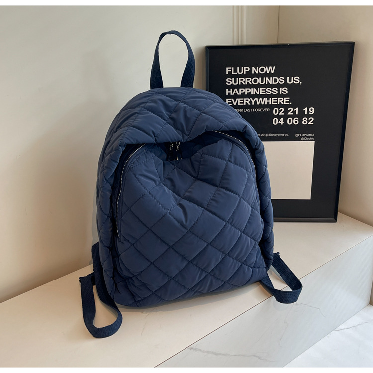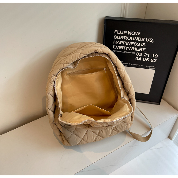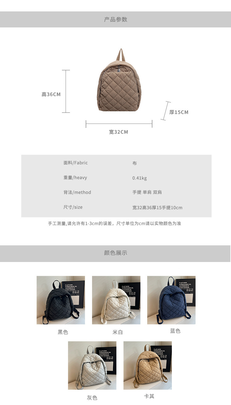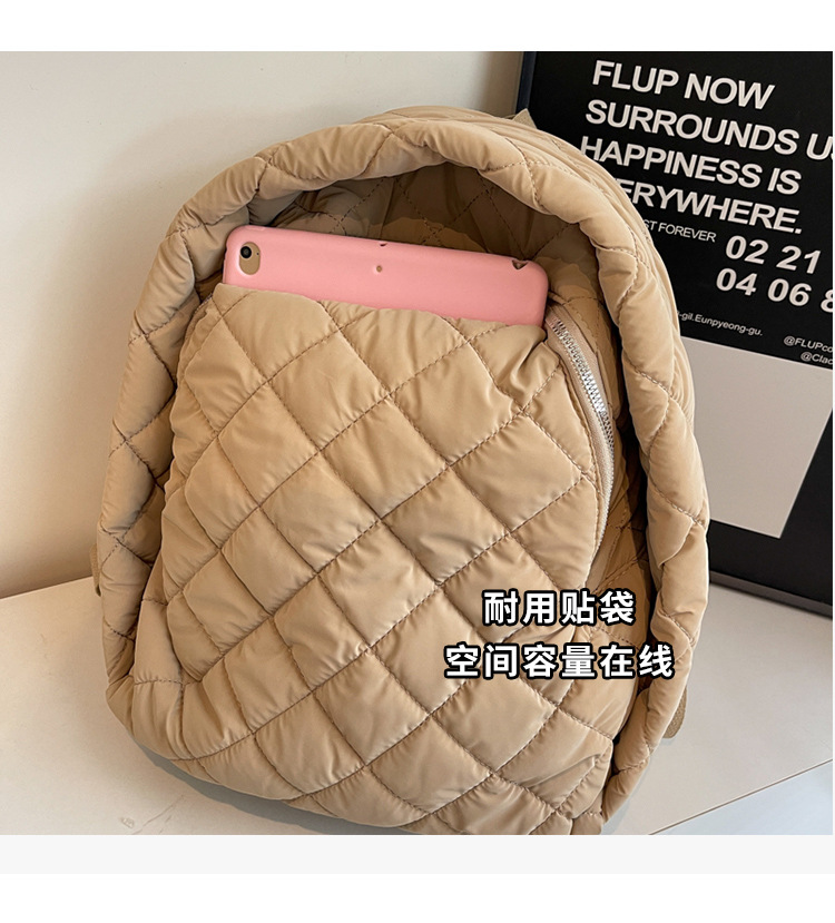 도매 2024 새로운 다이아몬드 격자 자수면 패딩 재킷 배낭 여성 공간면 대용량 학생 여행 레저 배낭