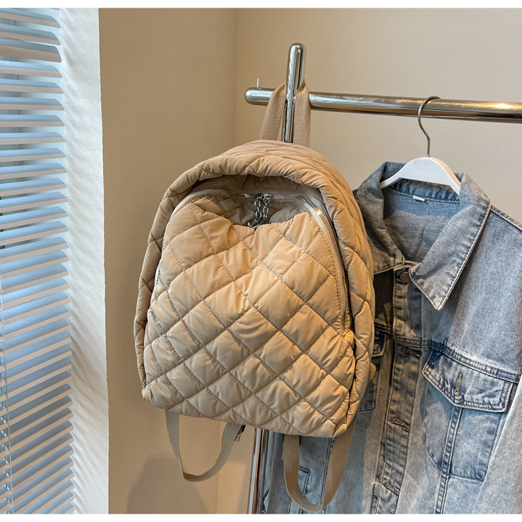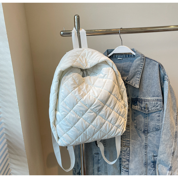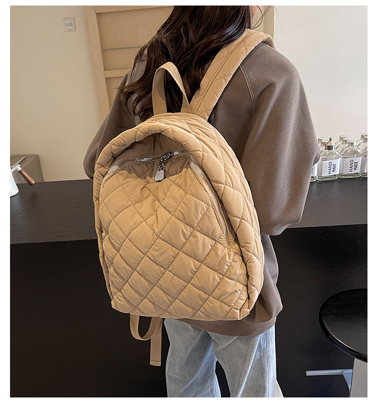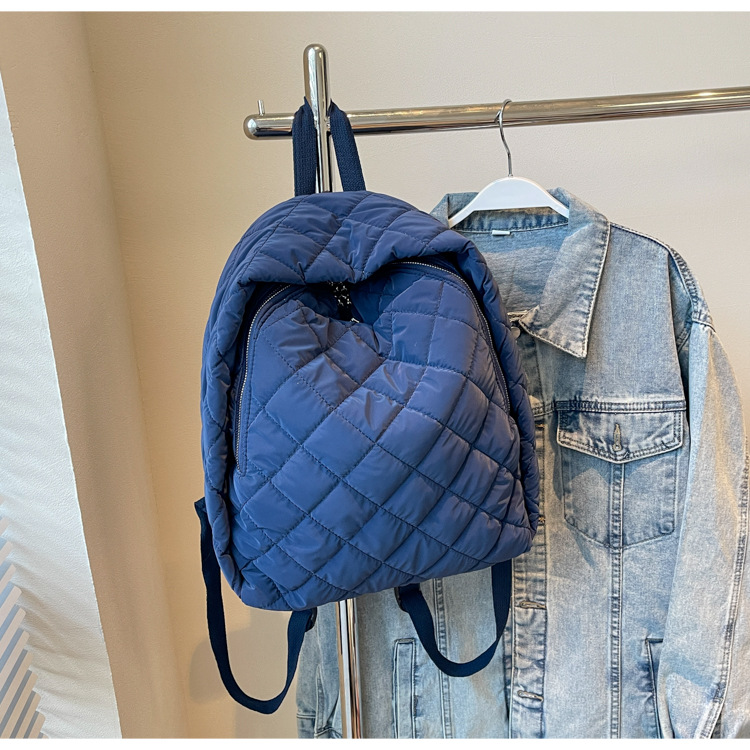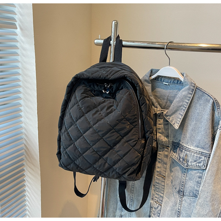 도매 2024 새로운 다이아몬드 격자 자수면 패딩 재킷 배낭 여성 공간면 대용량 학생 여행 레저 배낭스토어 가기