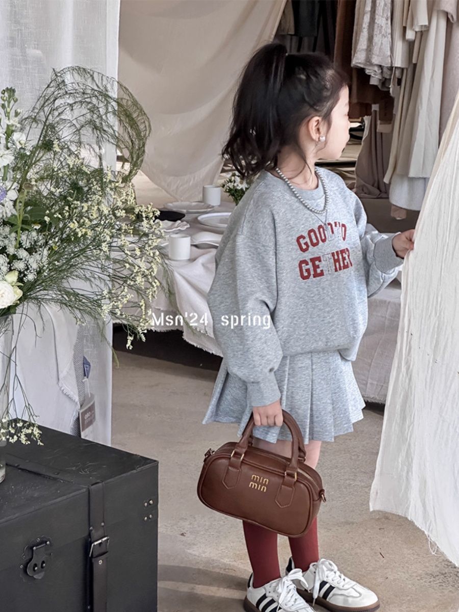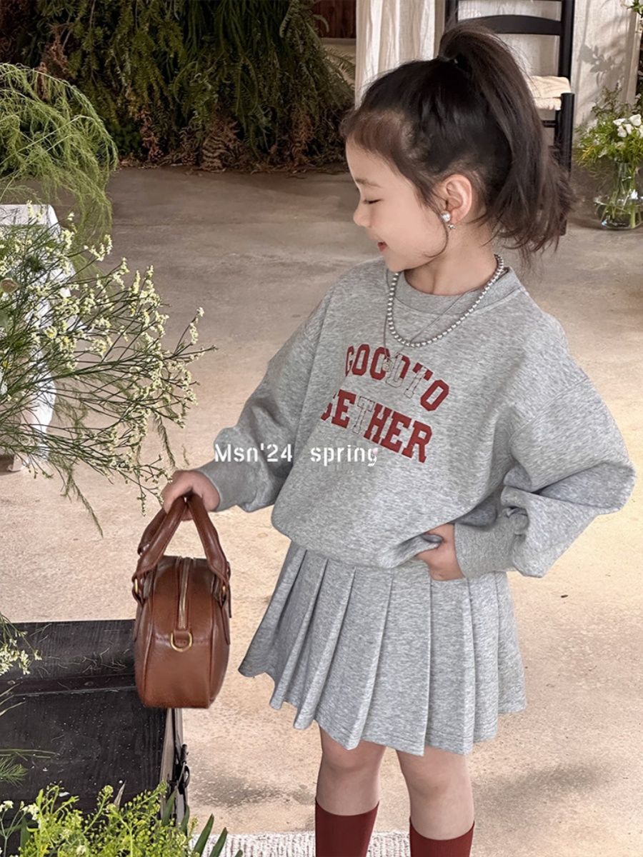 여자 가을 정장 스커트 2025 새로운 스타일 어린이 긴팔 스웨터 여자 가을 대학 스타일 주름 치마스토어 가기