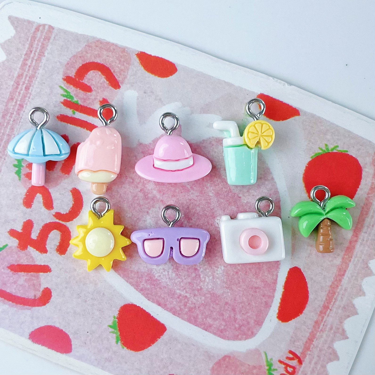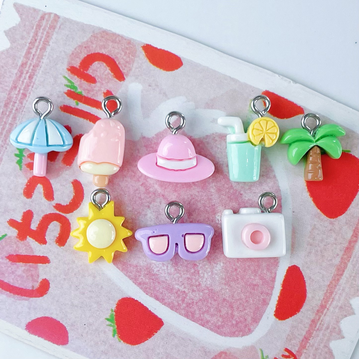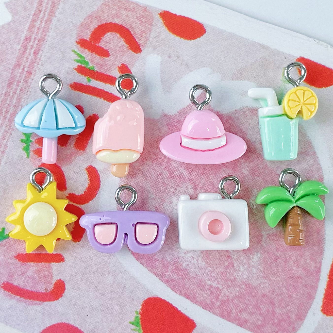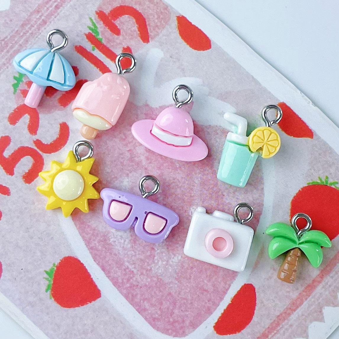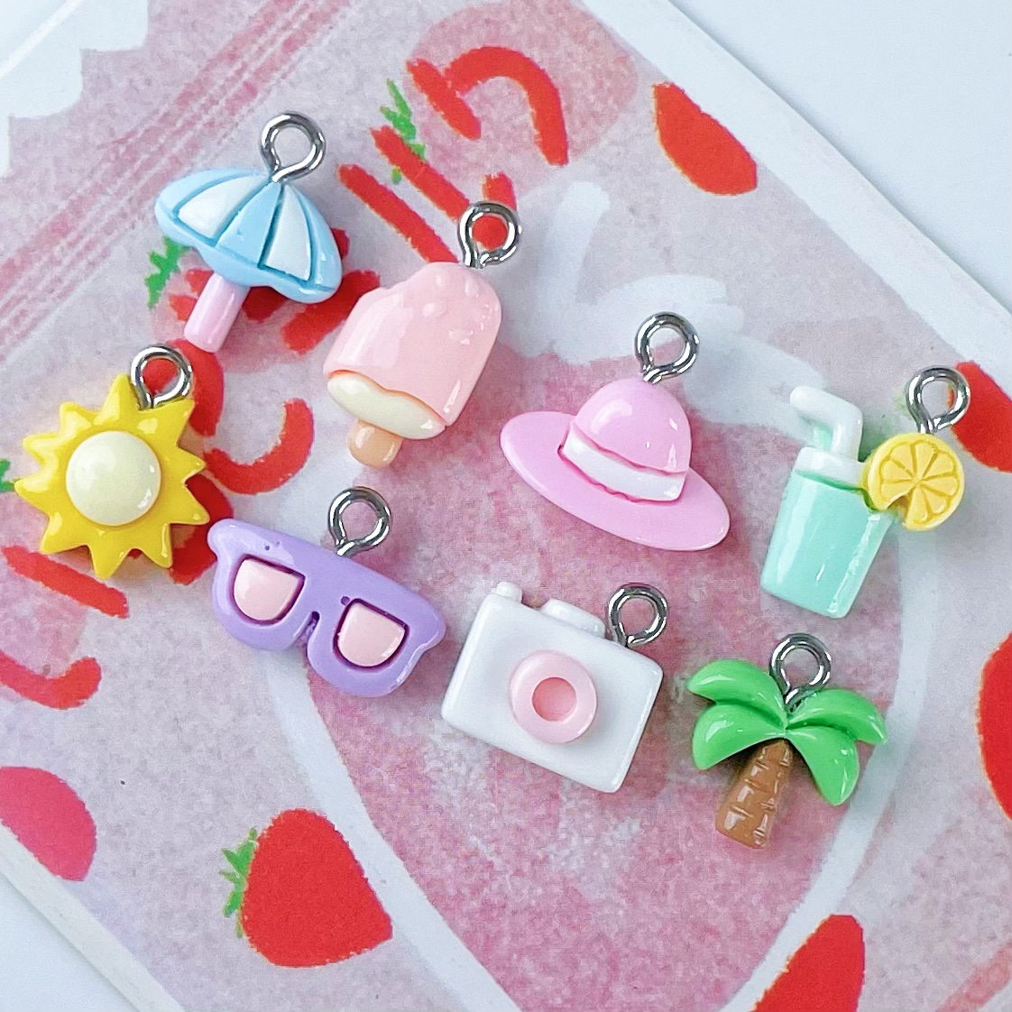 미니 귀여운 코코넛 나무 안경 물 컵 아이스크림 카메라 펜던트 수지 액세서리 DIY 보석 펜던트 키 체인