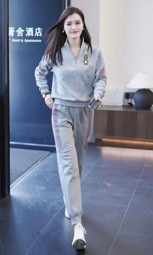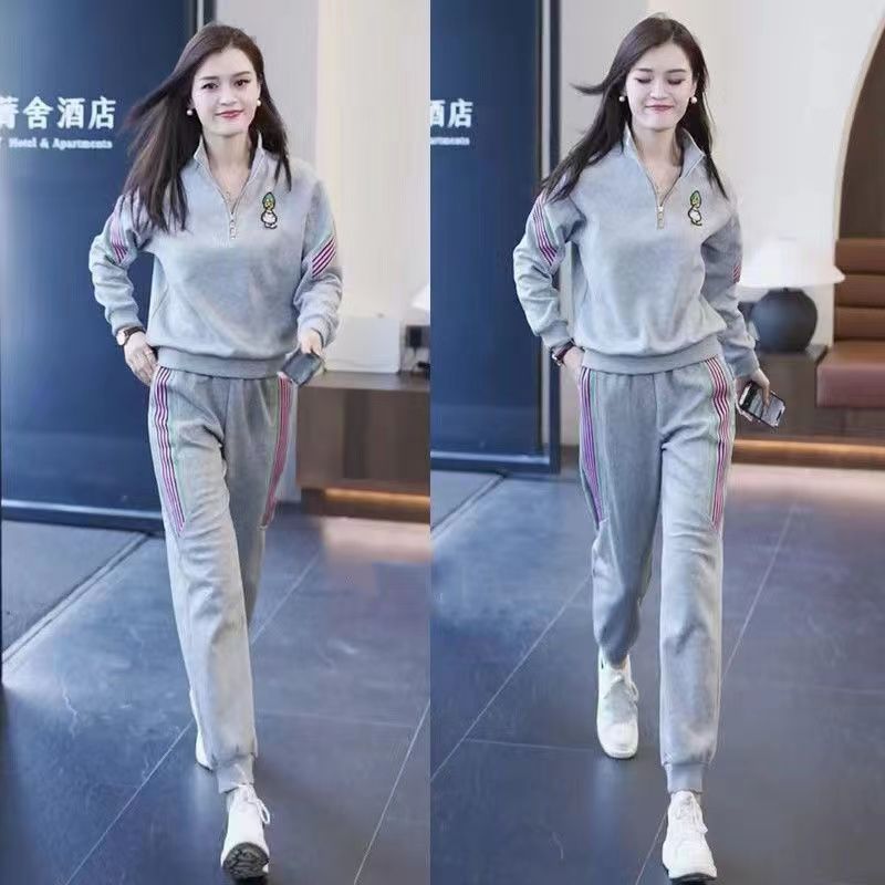 국경 간 플러스 사이즈 레저 스포츠웨어 세트 2024 가을과 겨울 느슨한 패션 패션 스웨터 바지 투피스 세트스토어 가기