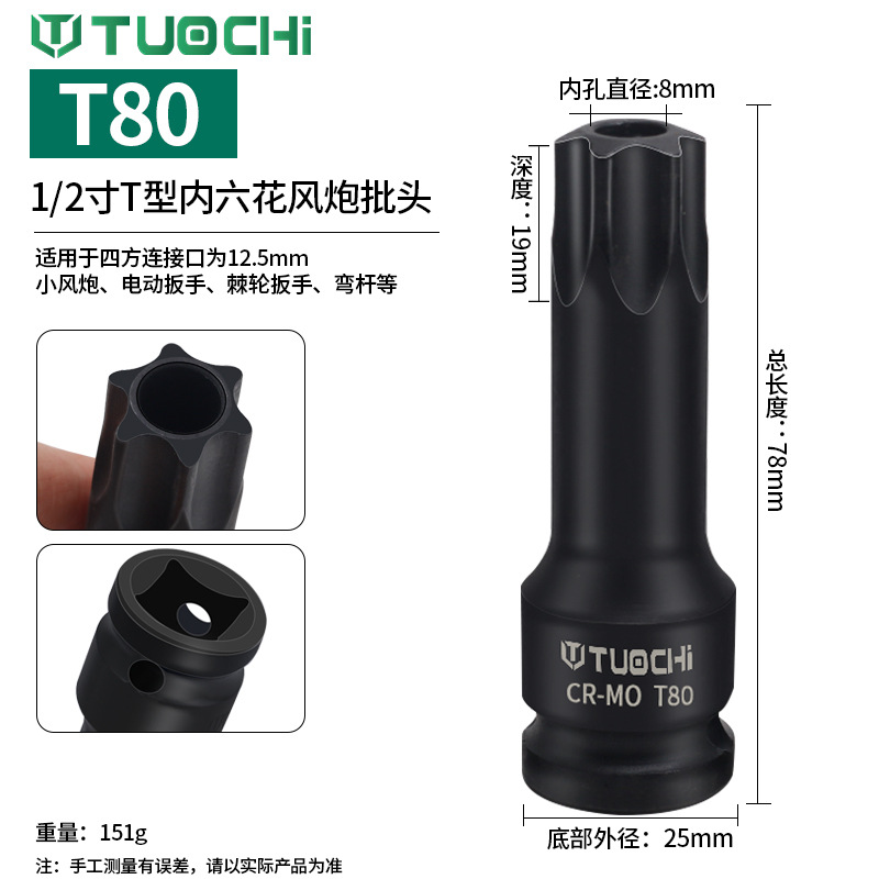 • 1/2 에어건 비트 Liuhua T80 중간 구멍