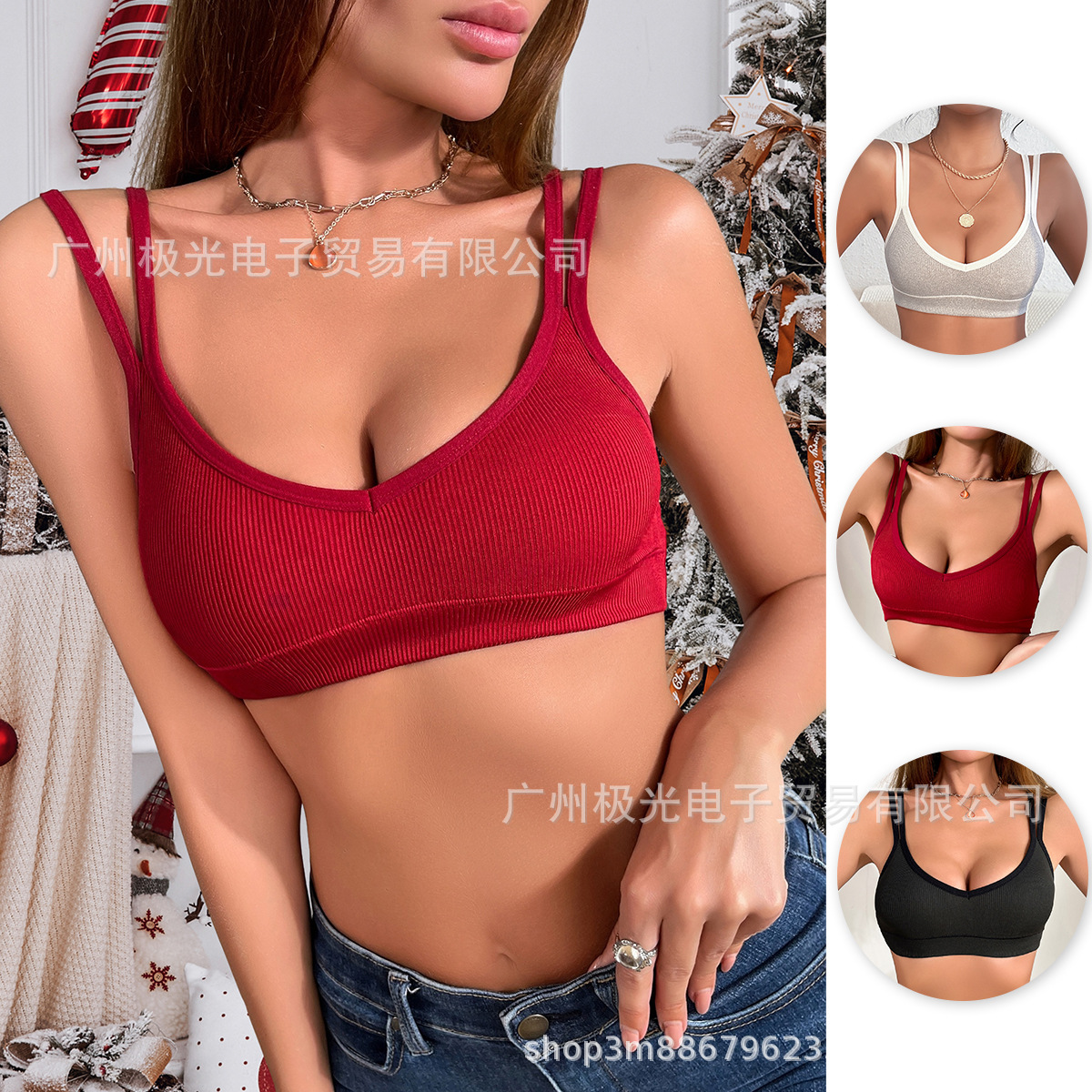 유럽 사이즈 여성 브라 스포츠 브라 크리스마스 신상 레드 노와이어 사이드 브라 유럽 및 미국 전용 통기성 브라스토어 가기