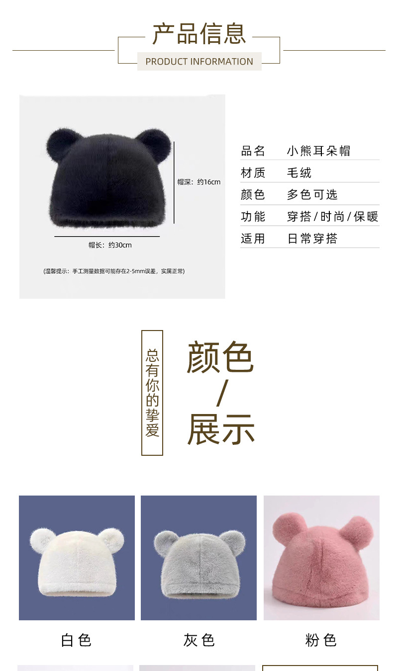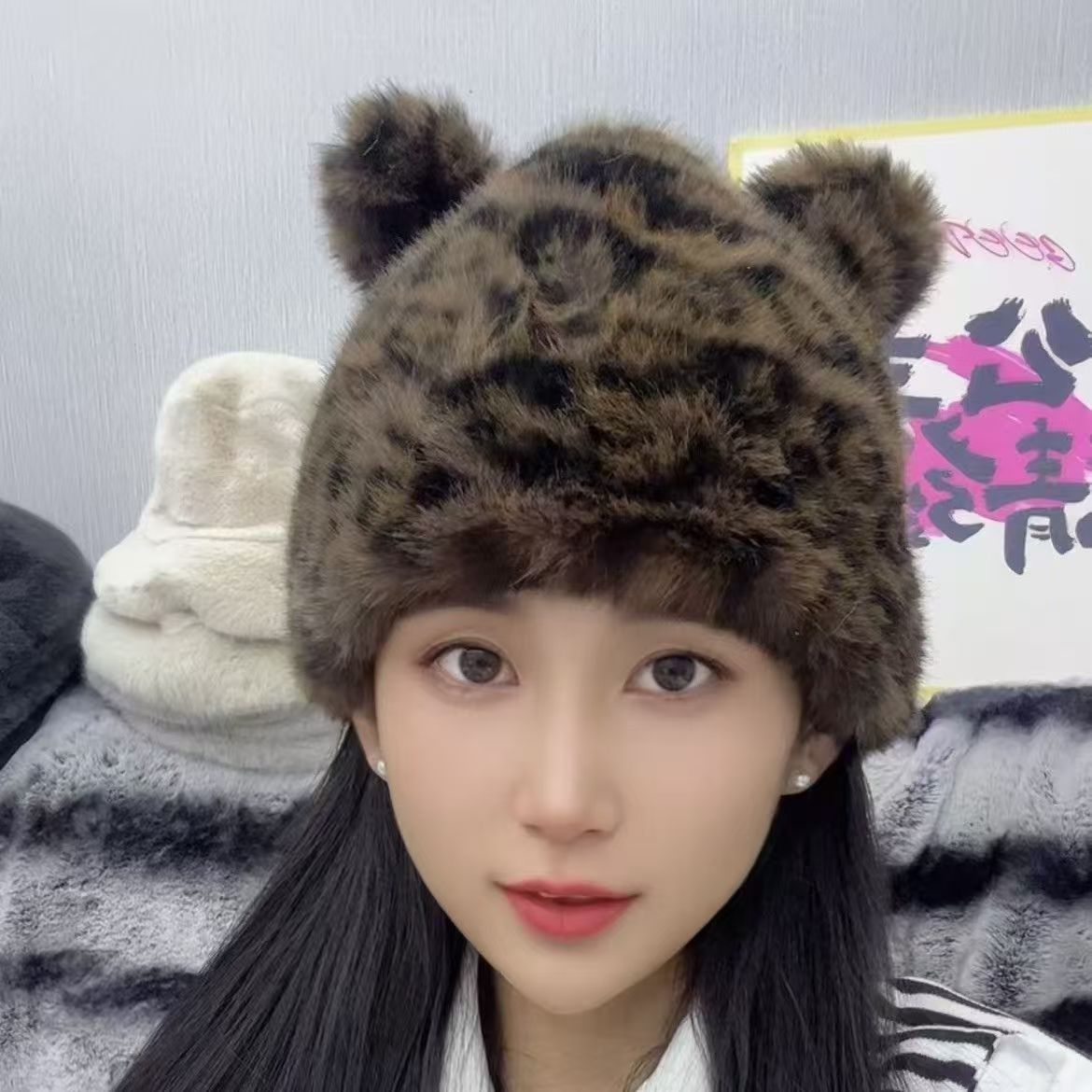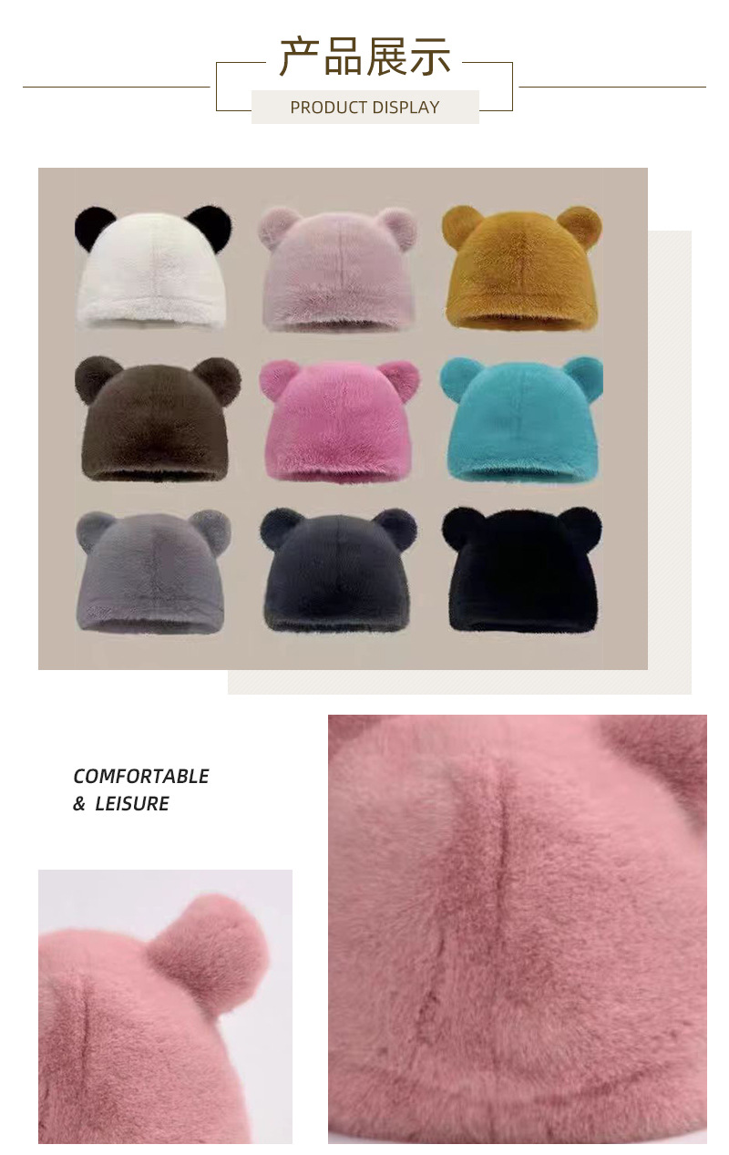 새로운 국경 곰 귀 모자 패션 트렌드 겨울 따뜻한 밍크 벨벳 숙녀 모조 모피 모자 도매스토어 가기