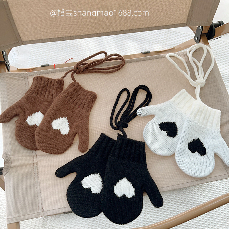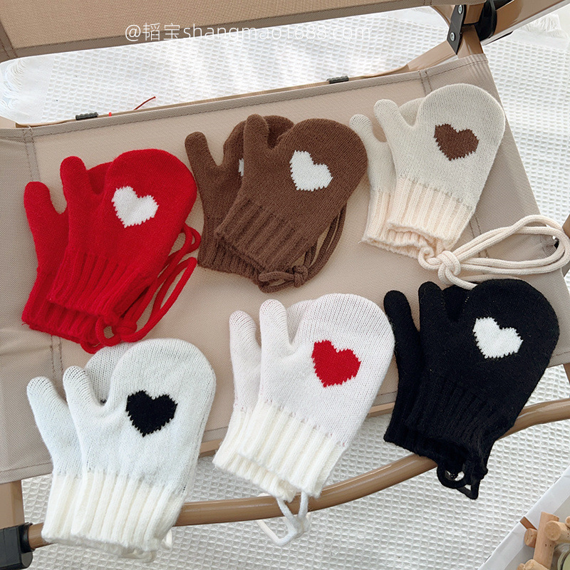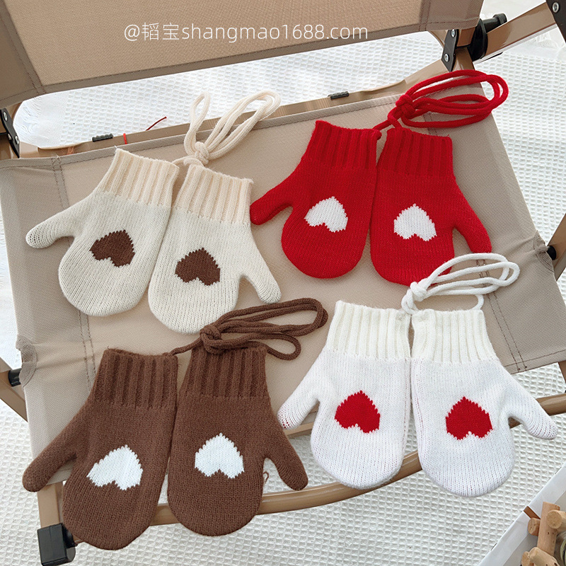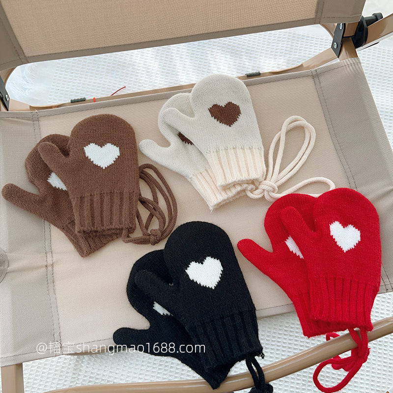 어린이 겨울 야외 따뜻한 방냉기 한국 간단한 사랑 소년과 소녀 목 니트 장갑스토어 가기