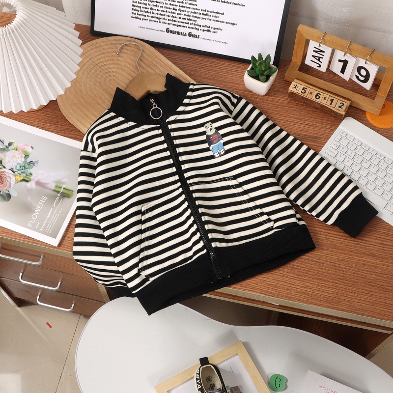 어린이 코트 가을과 겨울 새로운 만화 소년 소녀 자켓 아기 큰 어린이 모두 일치하는 줄무늬 지퍼 셔츠 도매스토어 가기