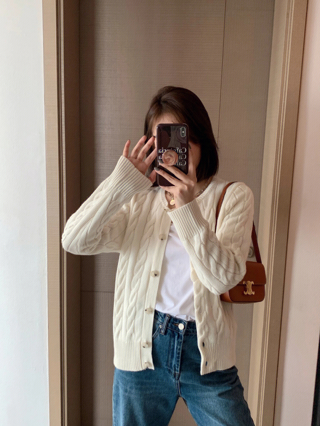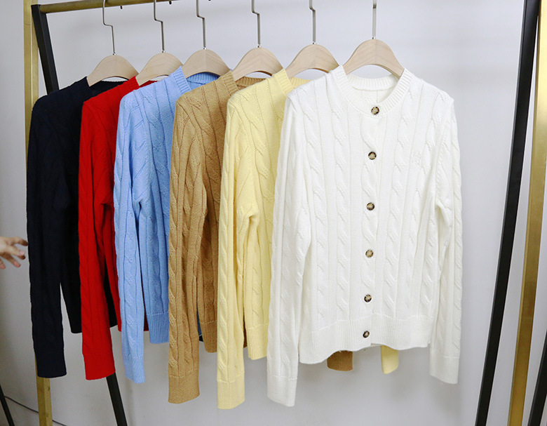 Rl Ralph Pony 자수 니트 여성용 카디건 라운드 넥 울 카디건 쇼트 탑 재킷스토어 가기