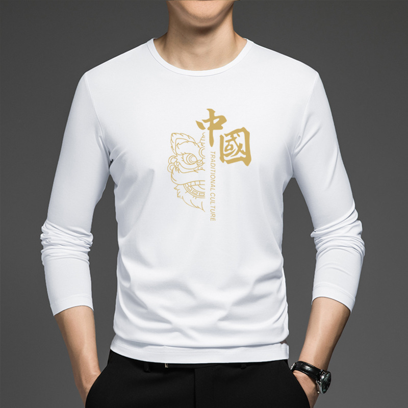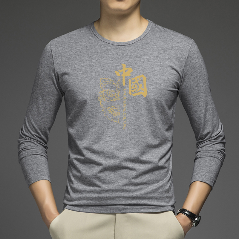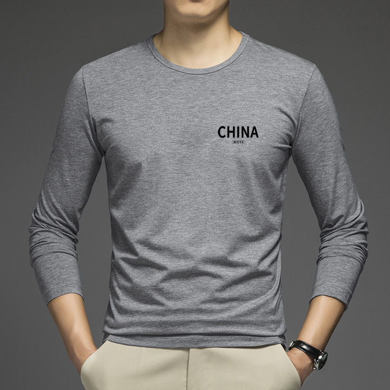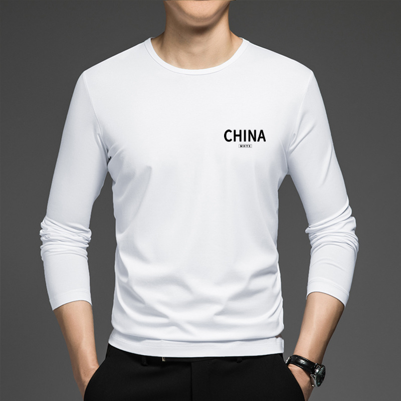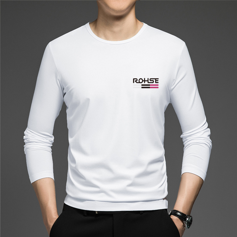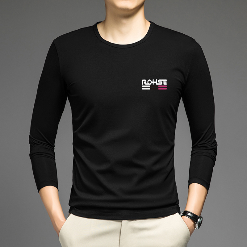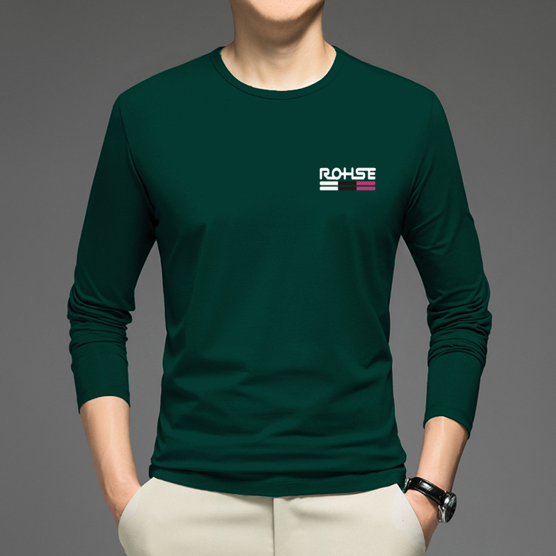 얇은 둥근 목 긴 소매 최고 남자의 새로운 봄과 가을베이스 셔츠 캐주얼 올 매치 느슨한 2024 새로운 남자스토어 가기