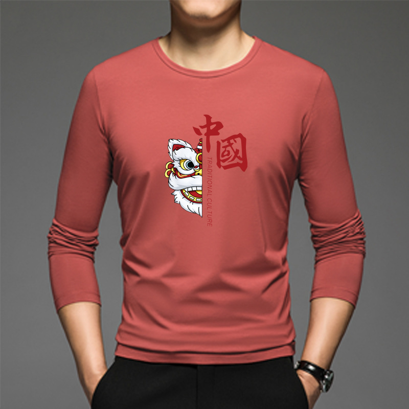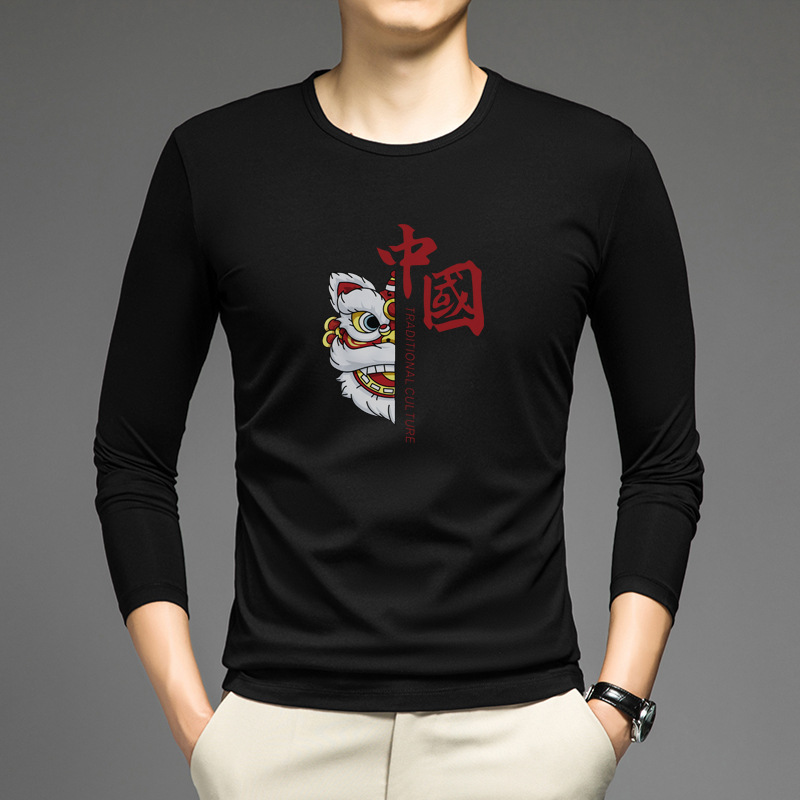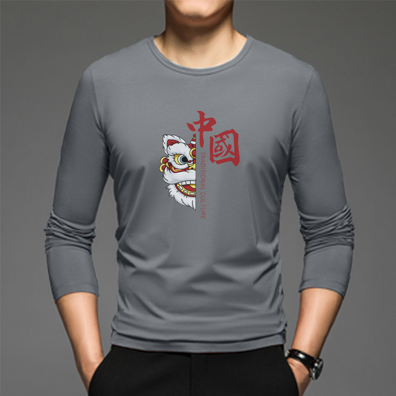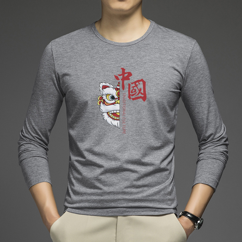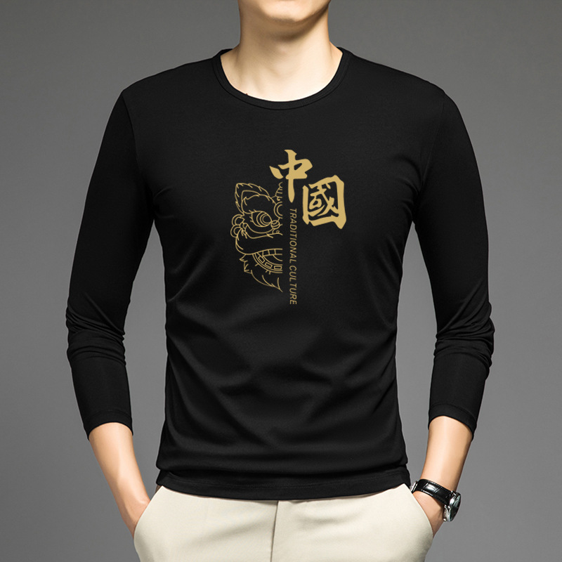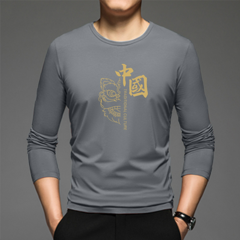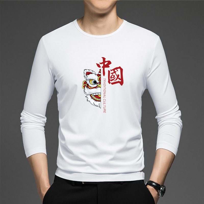 얇은 둥근 목 긴 소매 최고 남자의 새로운 봄과 가을베이스 셔츠 캐주얼 올 매치 느슨한 2024 새로운 남자스토어 가기