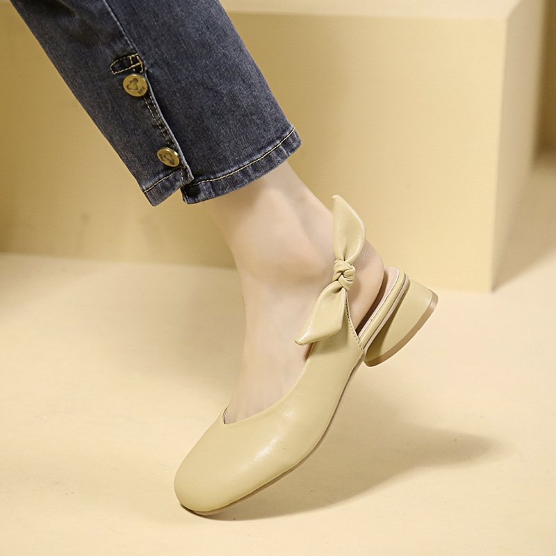 2024 봄과 여름 새로운 청키 힐 Baotou 싱글 레이어 신발 라운드 발가락 미드 힐 소프트 솔 밀크 신발 여성용 복고풍 편안한 빈 샌들