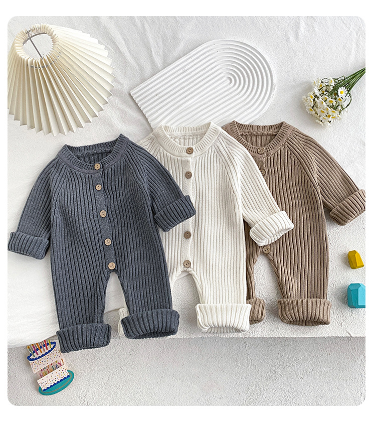 아기의 가을 옷 긴팔 스웨터 아기의 귀여운 보름달 점프 수트 니트 등반 옷 신생아 복장
