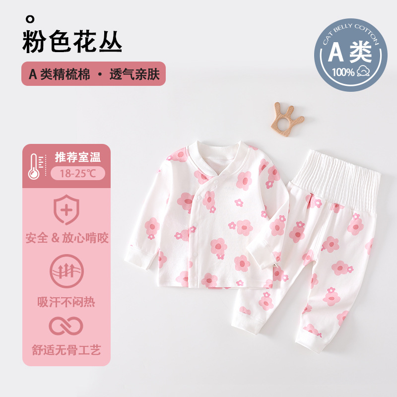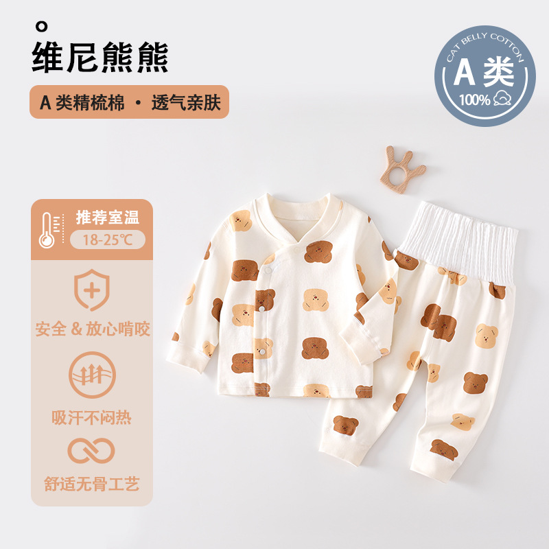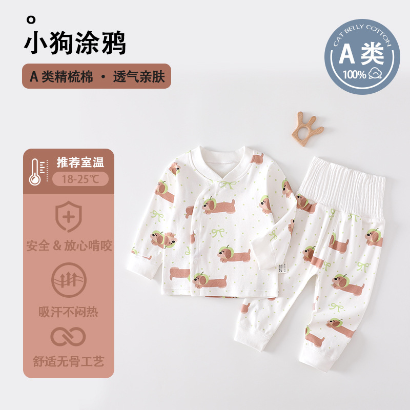 순면 A 라벨 아기 잠옷 봄과 가을 싱글 레이어 잠옷 세트 긴 소매 가을 옷 아기 옷 아기 세트