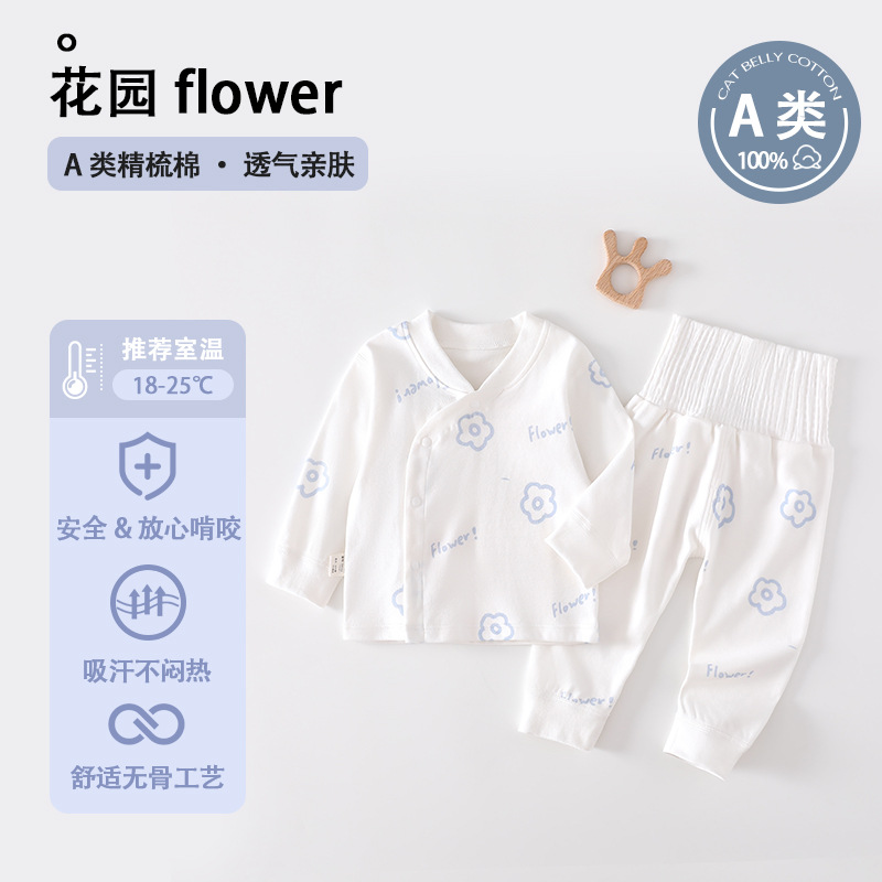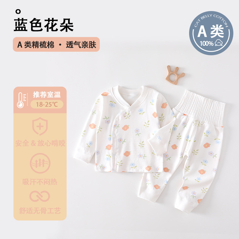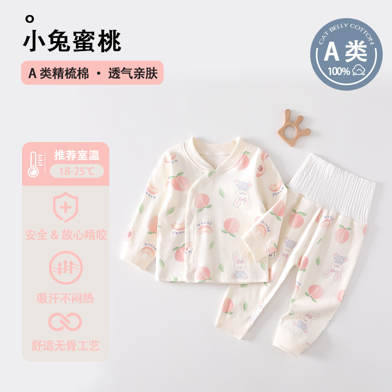 순면 A 라벨 아기 잠옷 봄과 가을 싱글 레이어 잠옷 세트 긴 소매 가을 옷 아기 옷 아기 세트스토어 가기