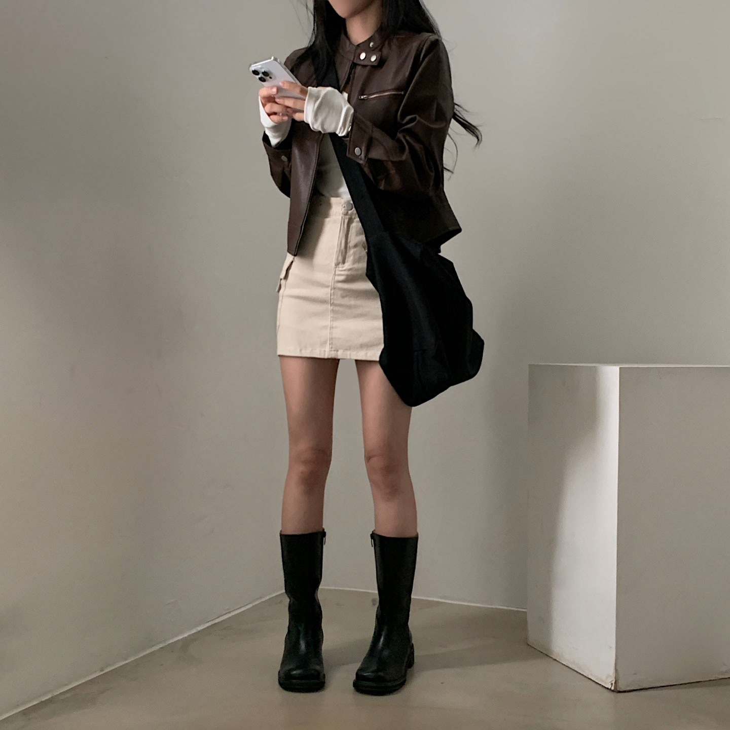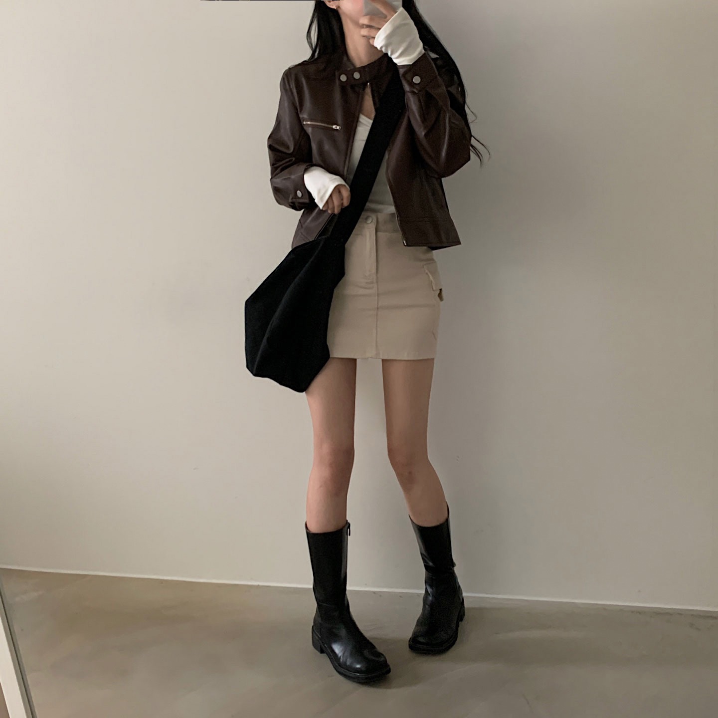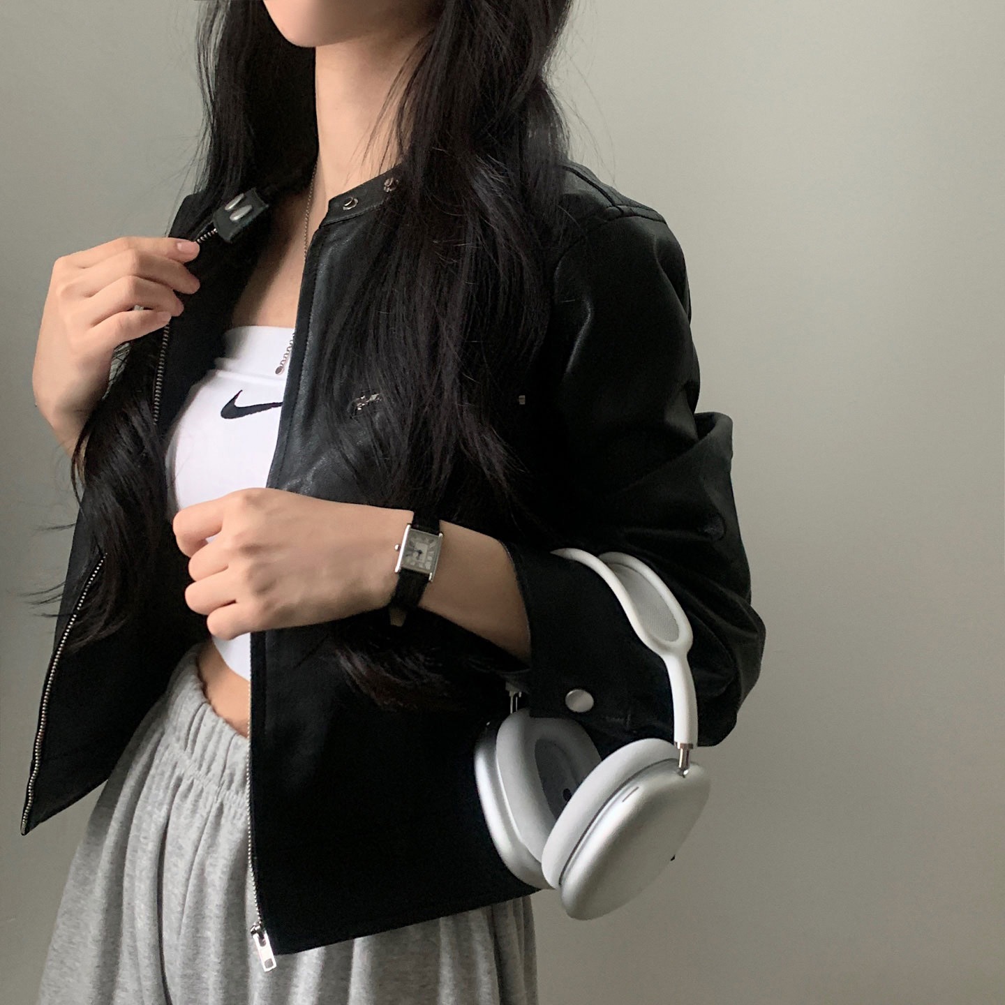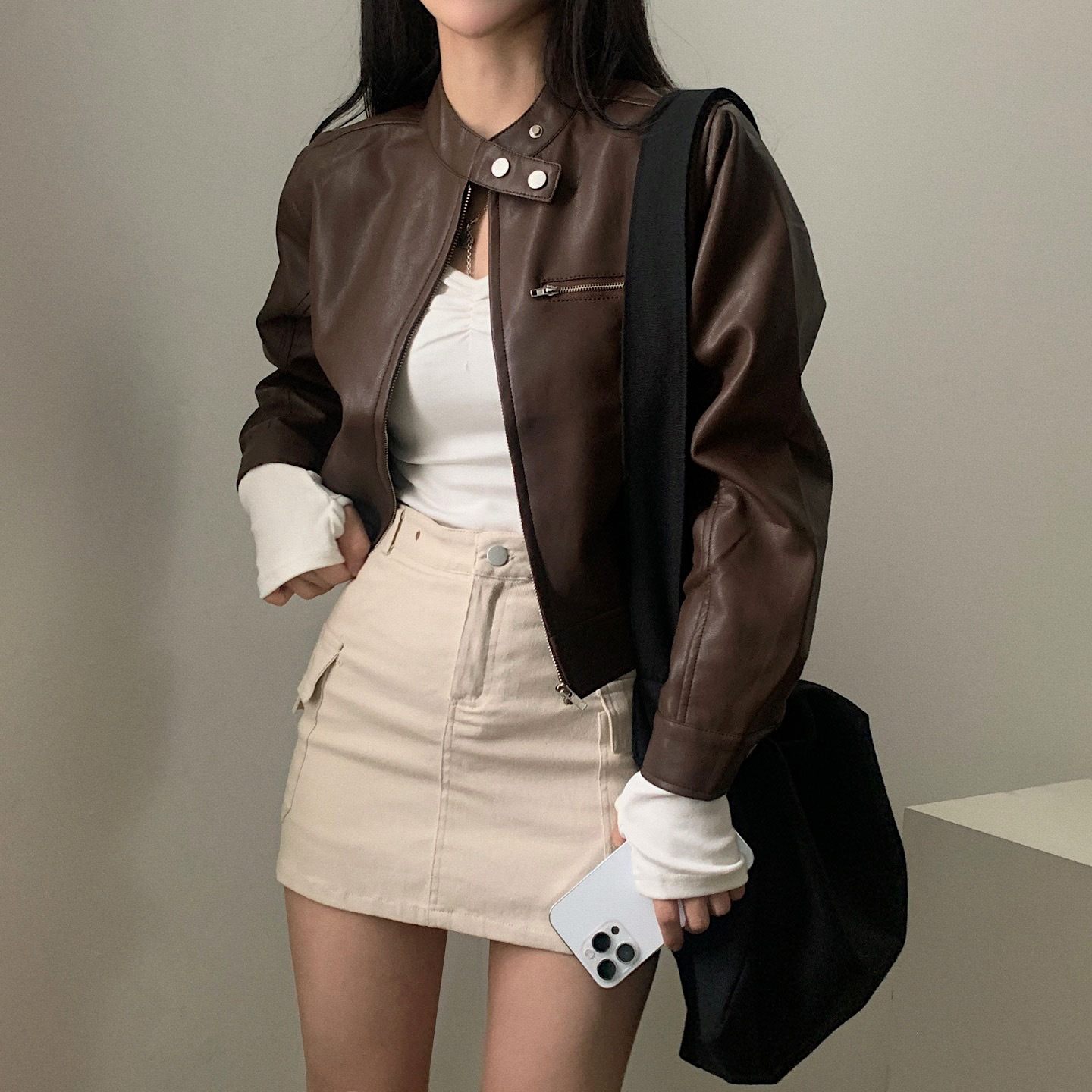 한국 세련된 가을과 겨울 빈티지 잘 생긴 둥근 목 지퍼 PU 가죽 느슨한 올매치 긴 소매 가죽 자켓 코트 여성스토어 가기