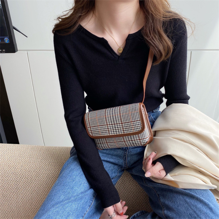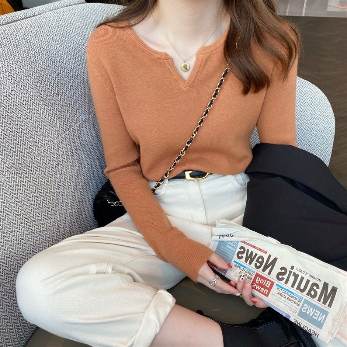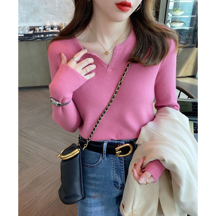 가을 브이넥 화이트 긴팔 니트 이너웨어 여성 상의 2025 가을 신상 슬림핏 이너 니트웨어
