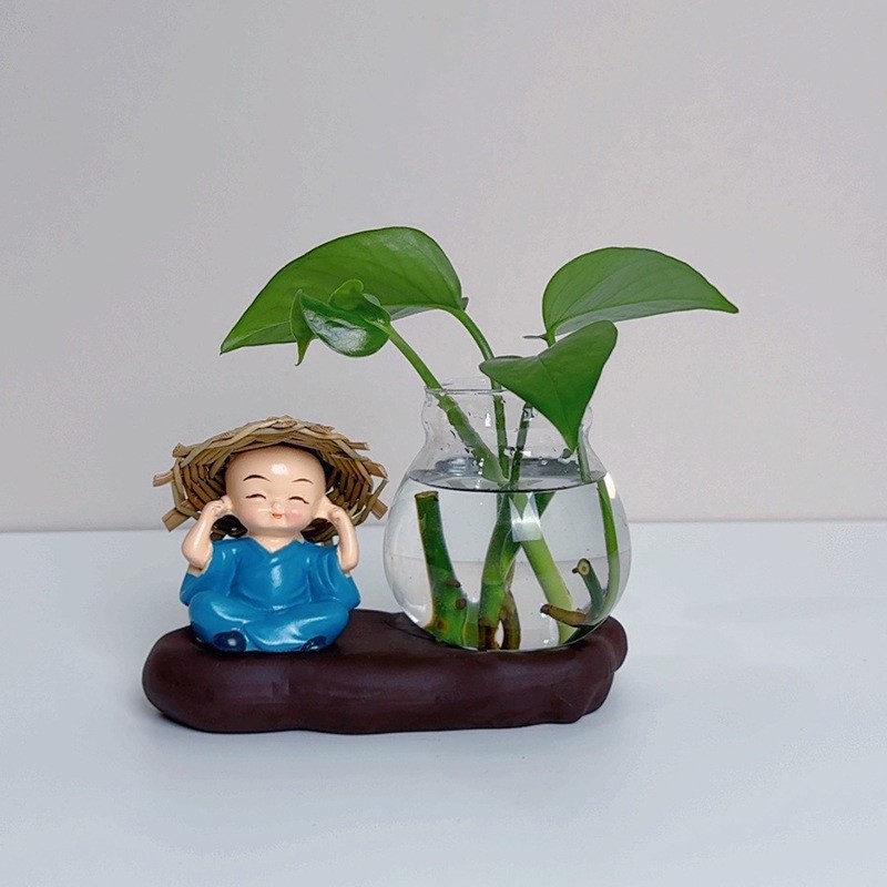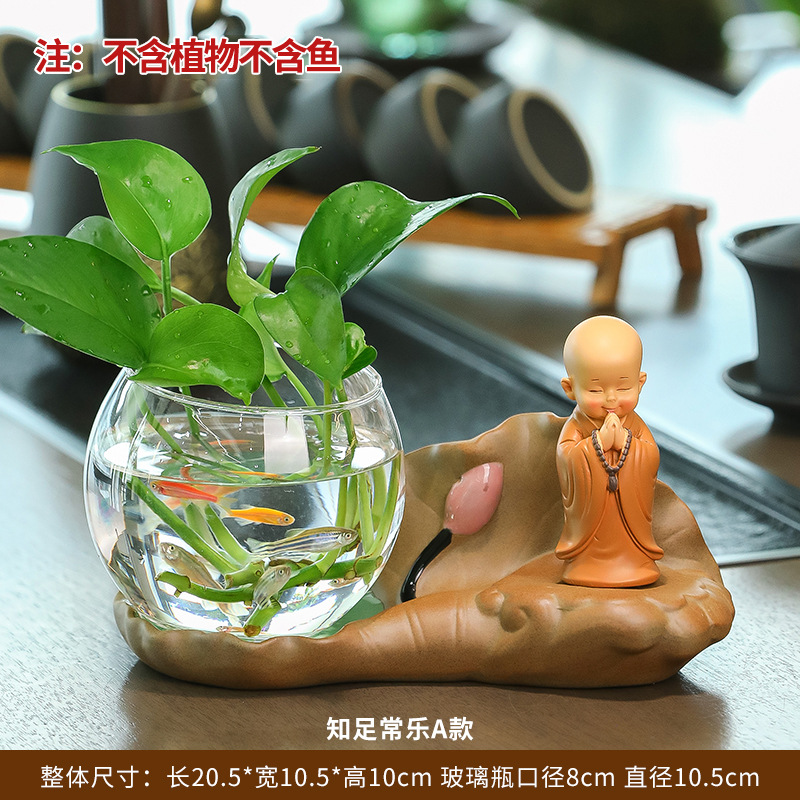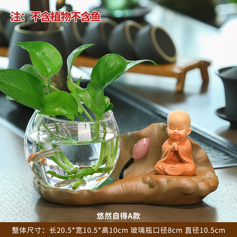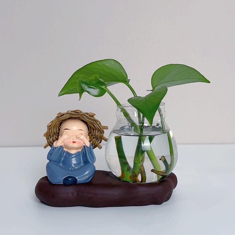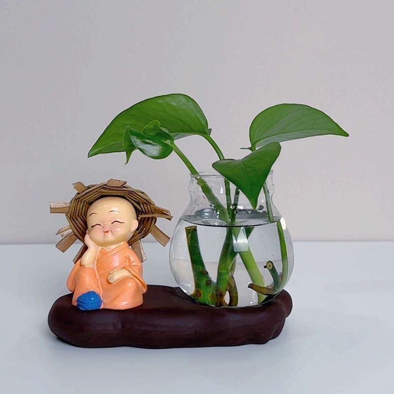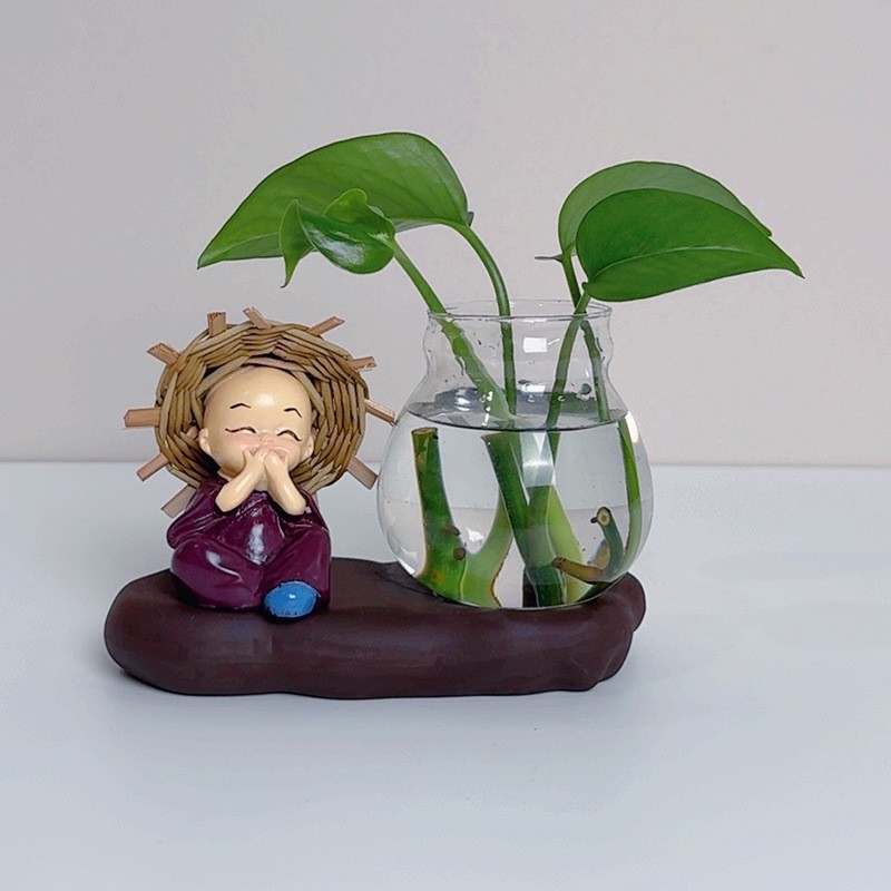 새로운 스님 그린 로즈 꽃병 큰 유리 꽃병 작은 스님 꽃 가정용 데스크탑 작은 장식품 장식 꽃병