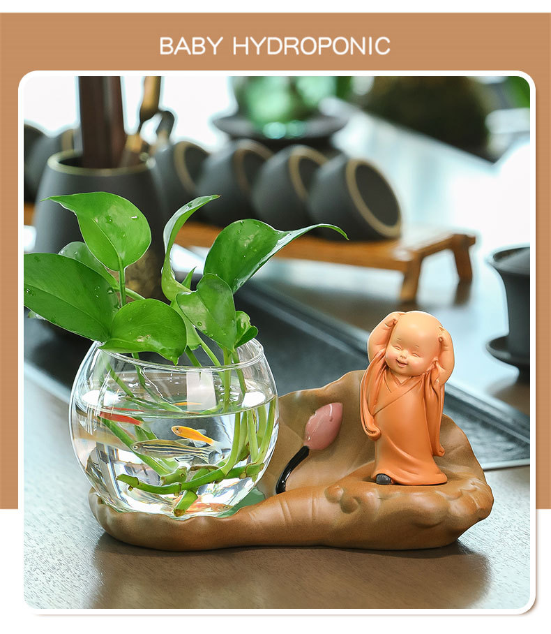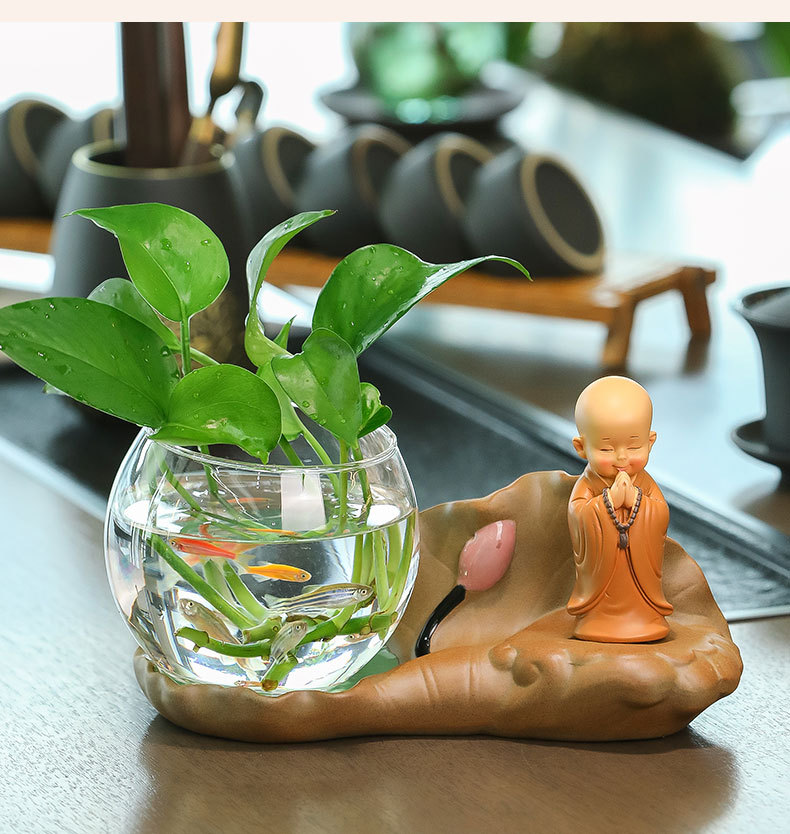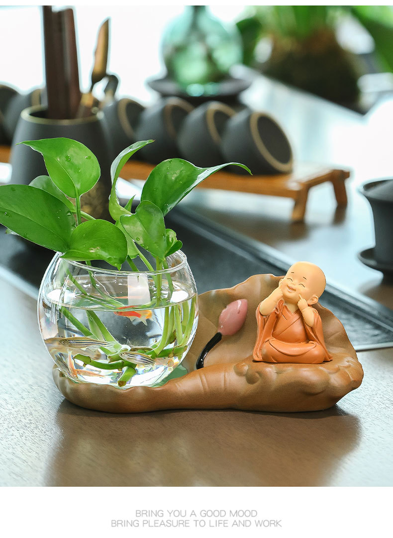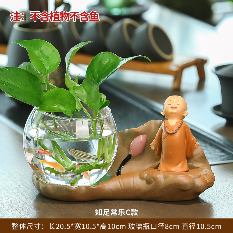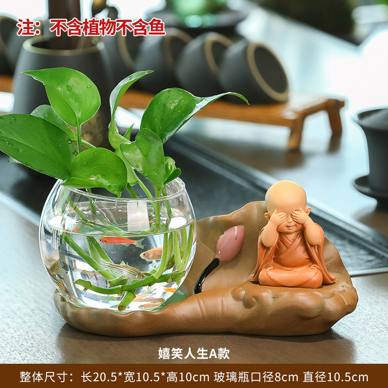 새로운 스님 그린 로즈 꽃병 큰 유리 꽃병 작은 스님 꽃 가정용 데스크탑 작은 장식품 장식 꽃병