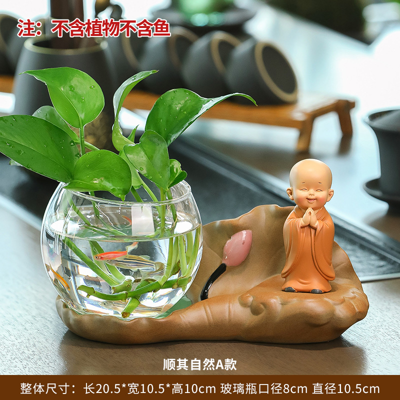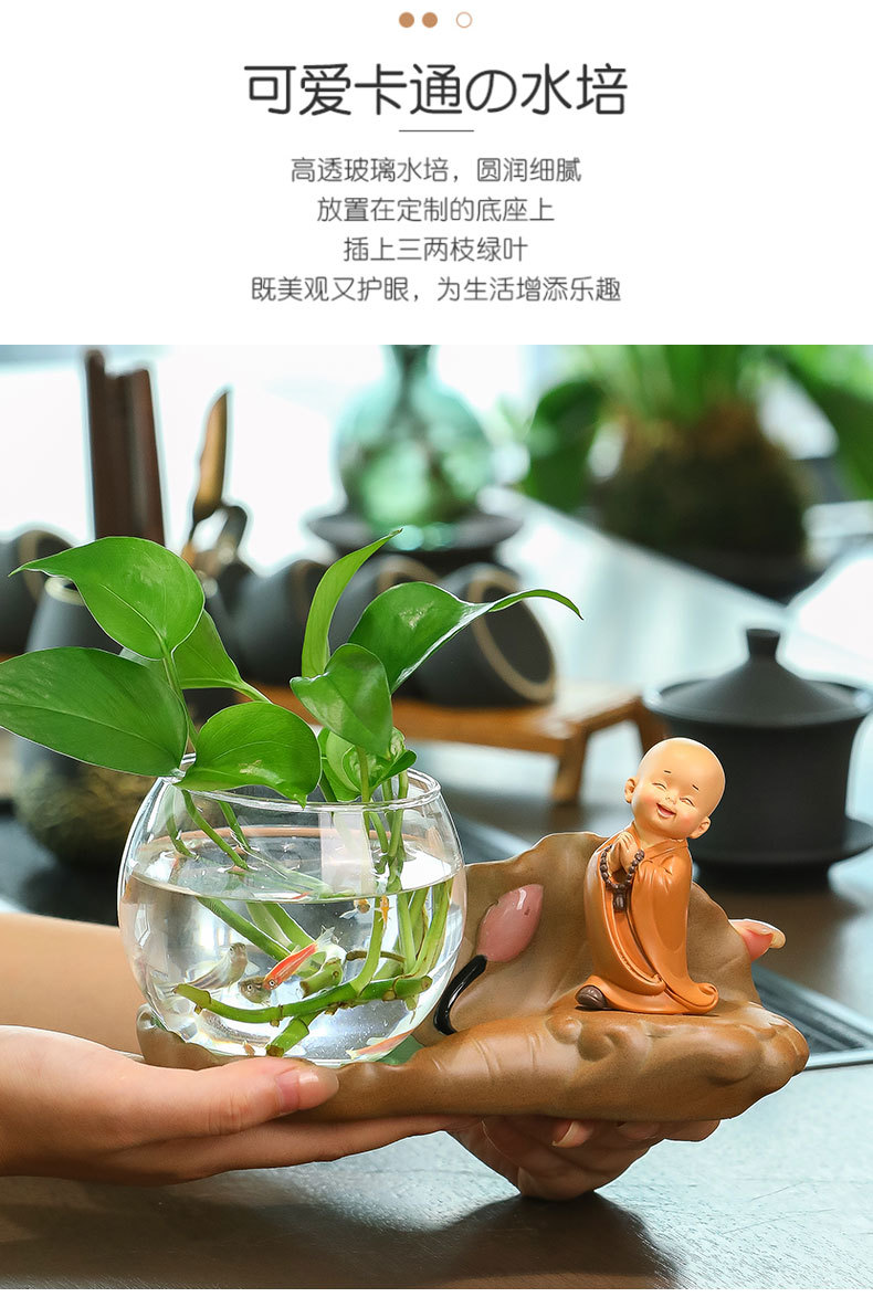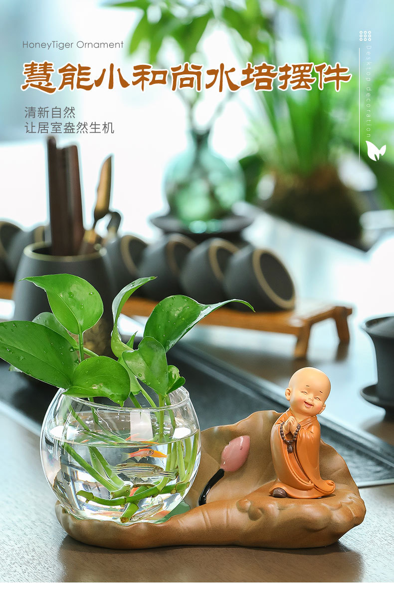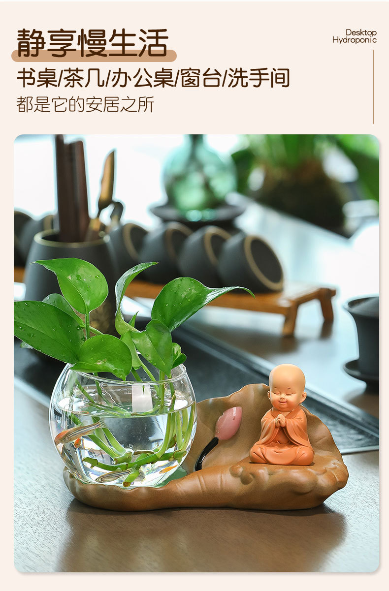 새로운 스님 그린 로즈 꽃병 큰 유리 꽃병 작은 스님 꽃 가정용 데스크탑 작은 장식품 장식 꽃병스토어 가기