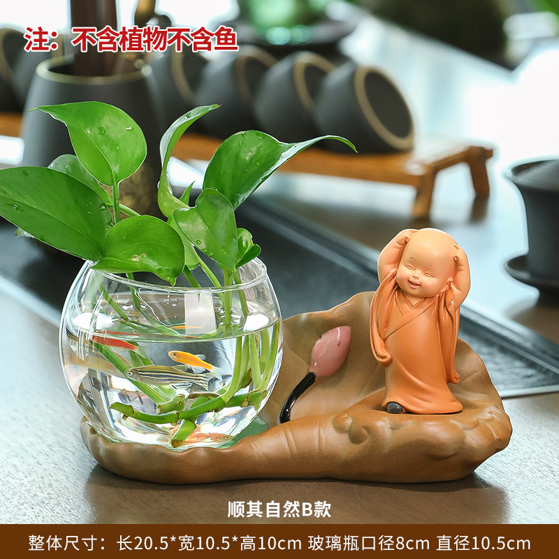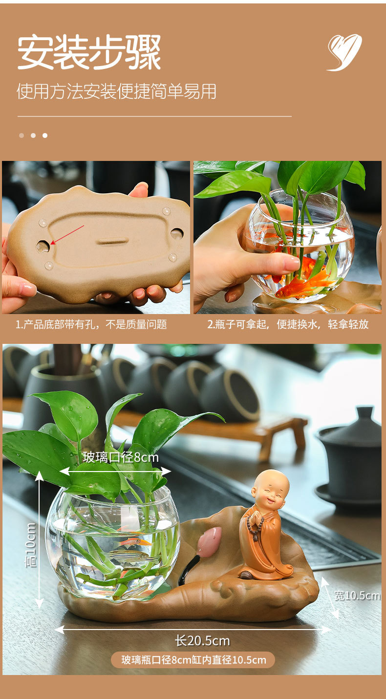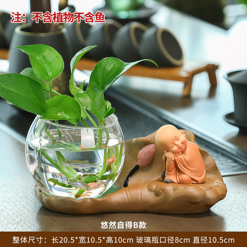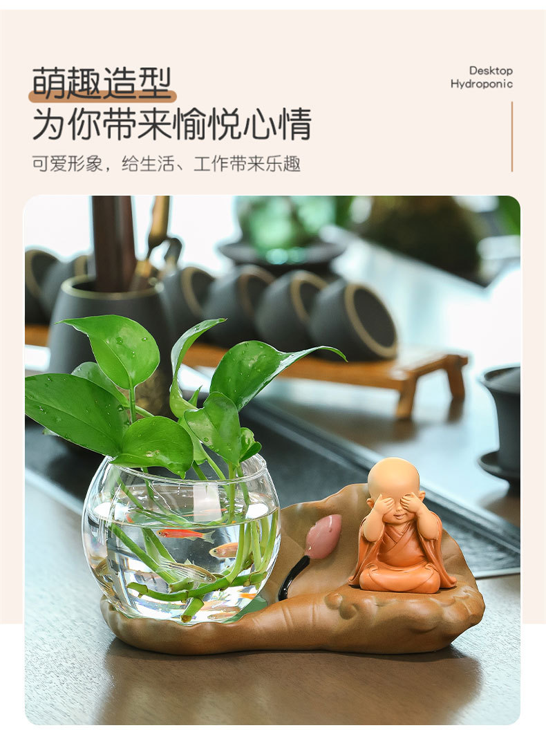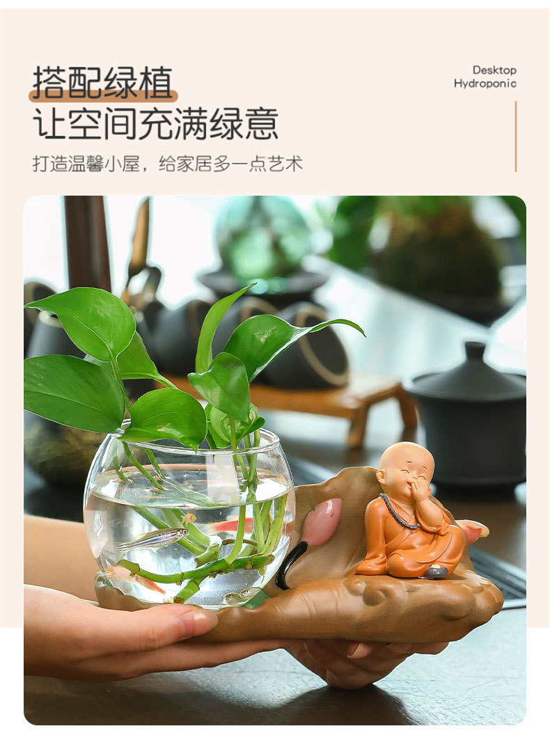새로운 스님 그린 로즈 꽃병 큰 유리 꽃병 작은 스님 꽃 가정용 데스크탑 작은 장식품 장식 꽃병스토어 가기