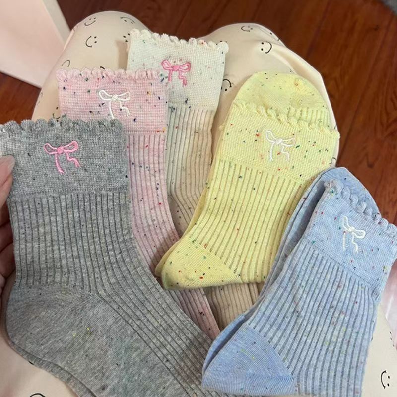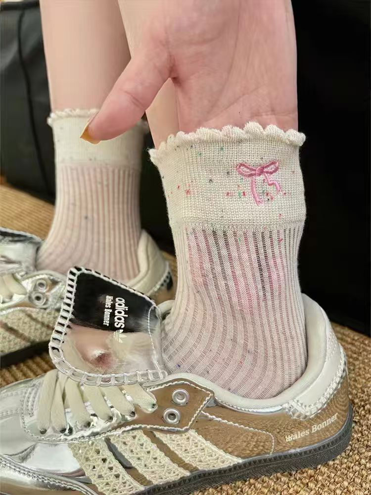 봄과 여름 레이스 얇은 양말 여성용 도트 원사 활 튜브 양말 한국 롤리타 수직 패턴 스타킹 여성