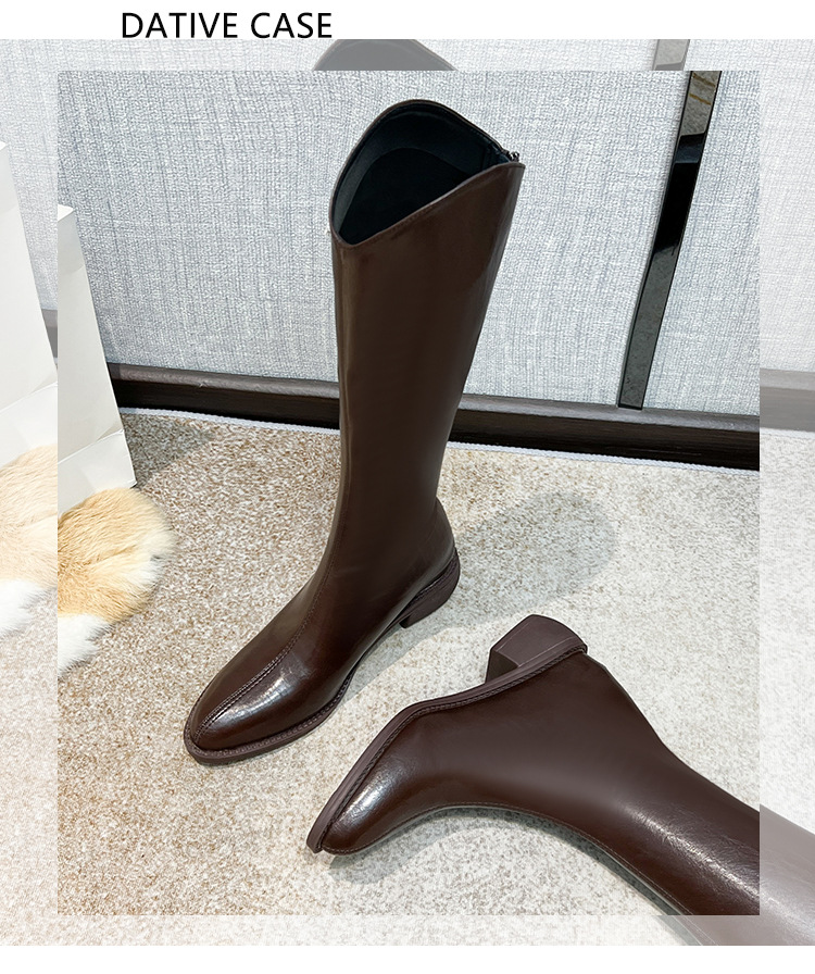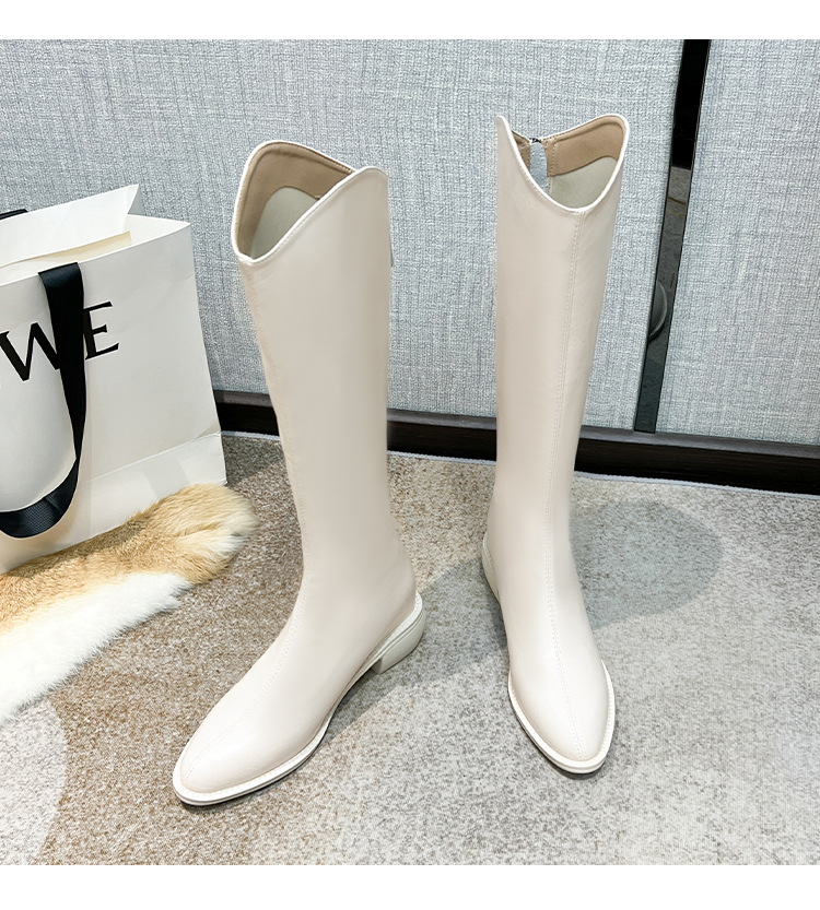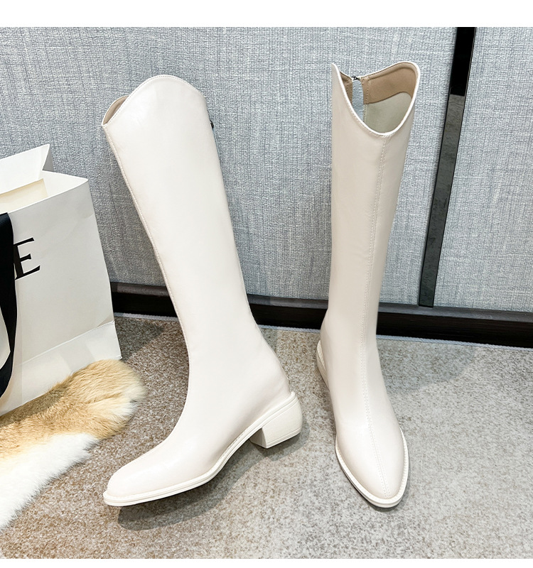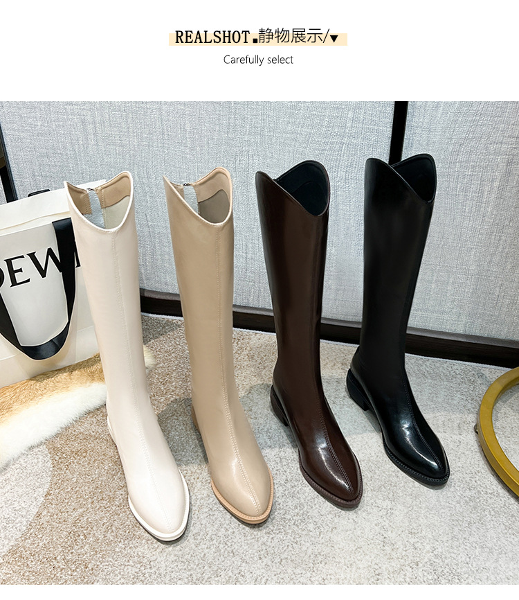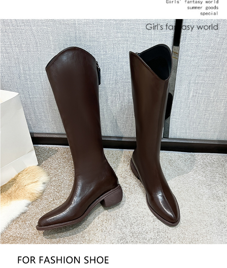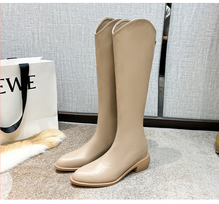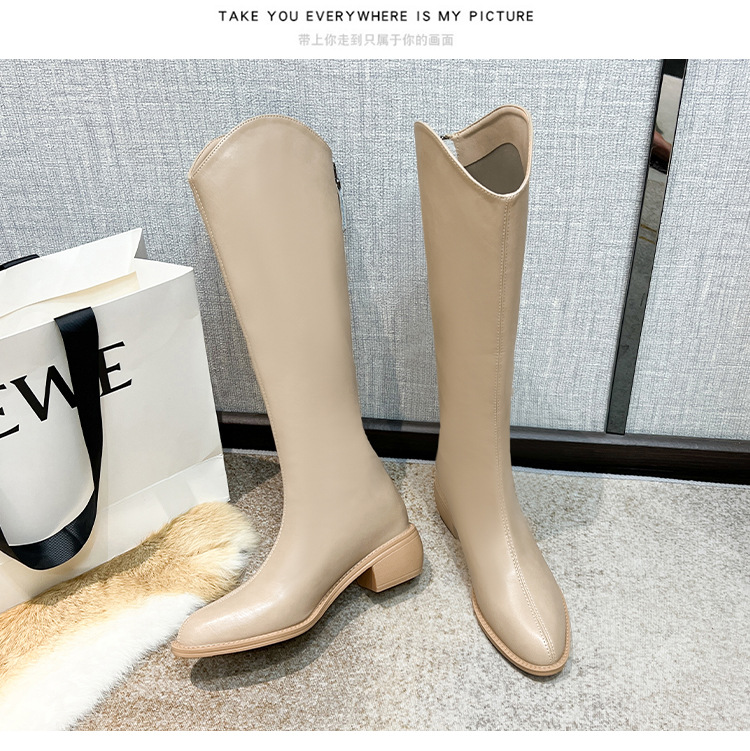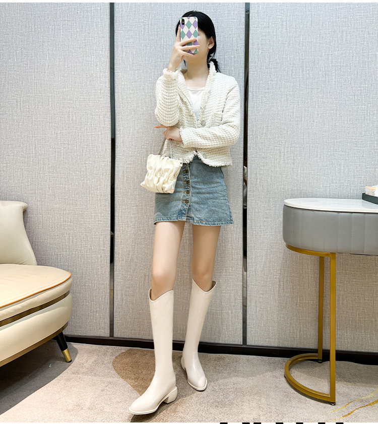 정품 가죽 스키니 다리 여성용 웨스턴 소프트 데님 가죽 기사 부츠 화이트 다크 브라운 뾰족한 8CM 오버 더 무릎 롱 부츠스토어 가기