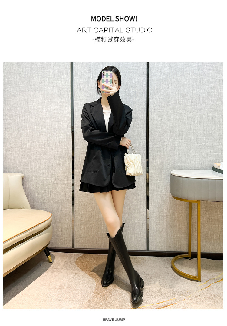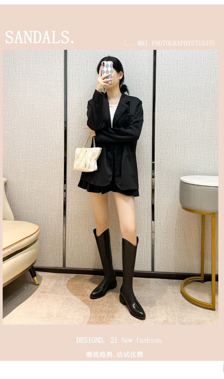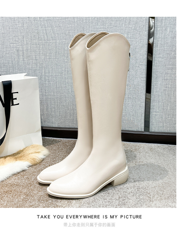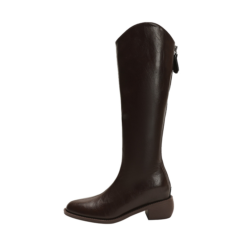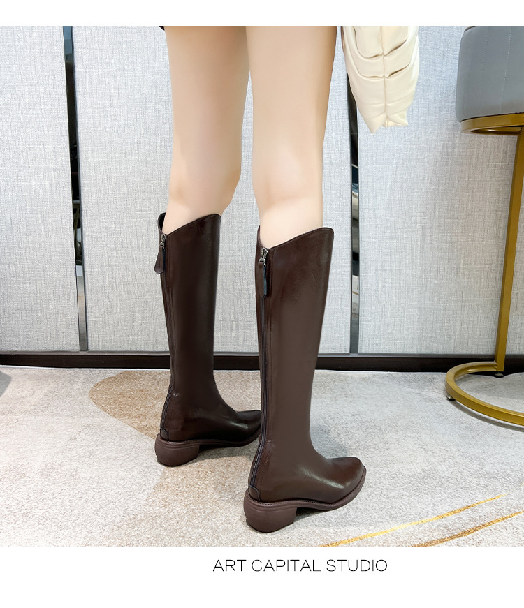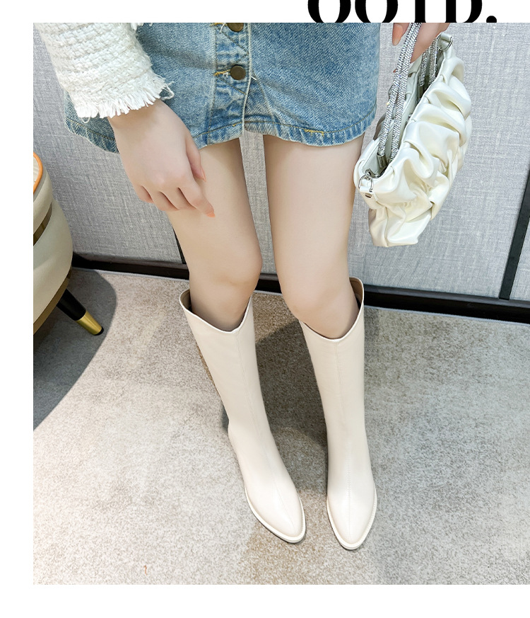 정품 가죽 스키니 다리 여성용 웨스턴 소프트 데님 가죽 기사 부츠 화이트 다크 브라운 뾰족한 8CM 오버 더 무릎 롱 부츠스토어 가기